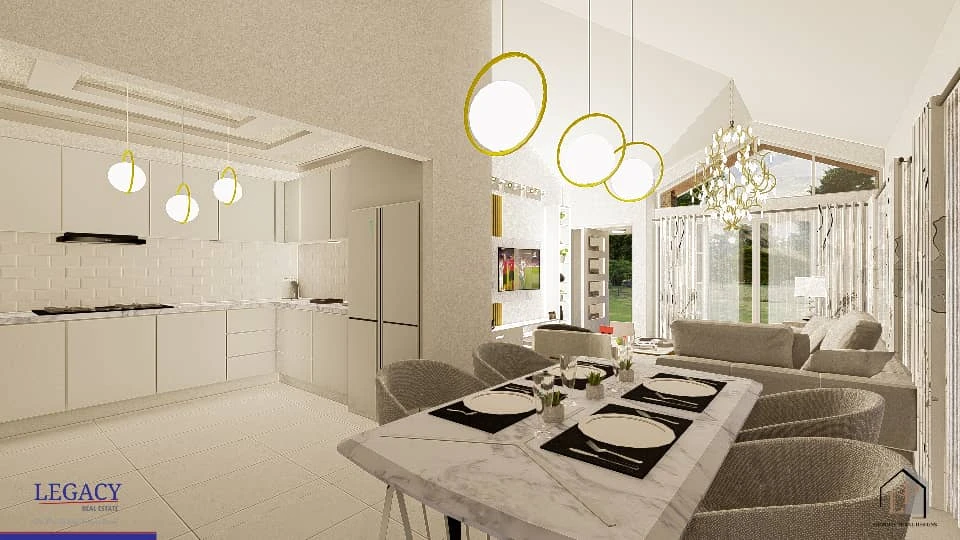 • Modern Amenities: An open-plan dining and lounge area complete with a sleek, modernized TV stand. The fitted kitchen comes fully equipped with electrical appliances, ready for immediate use.