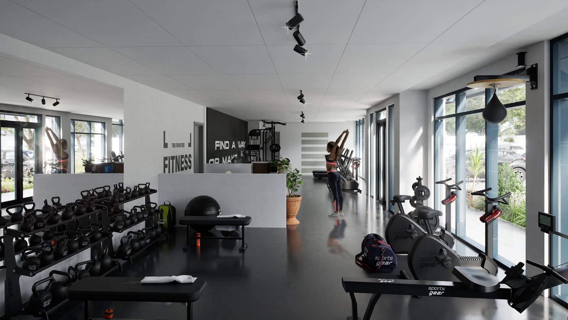 The project includes unique features such as a private gym, gazebo, entertainment area and office space.