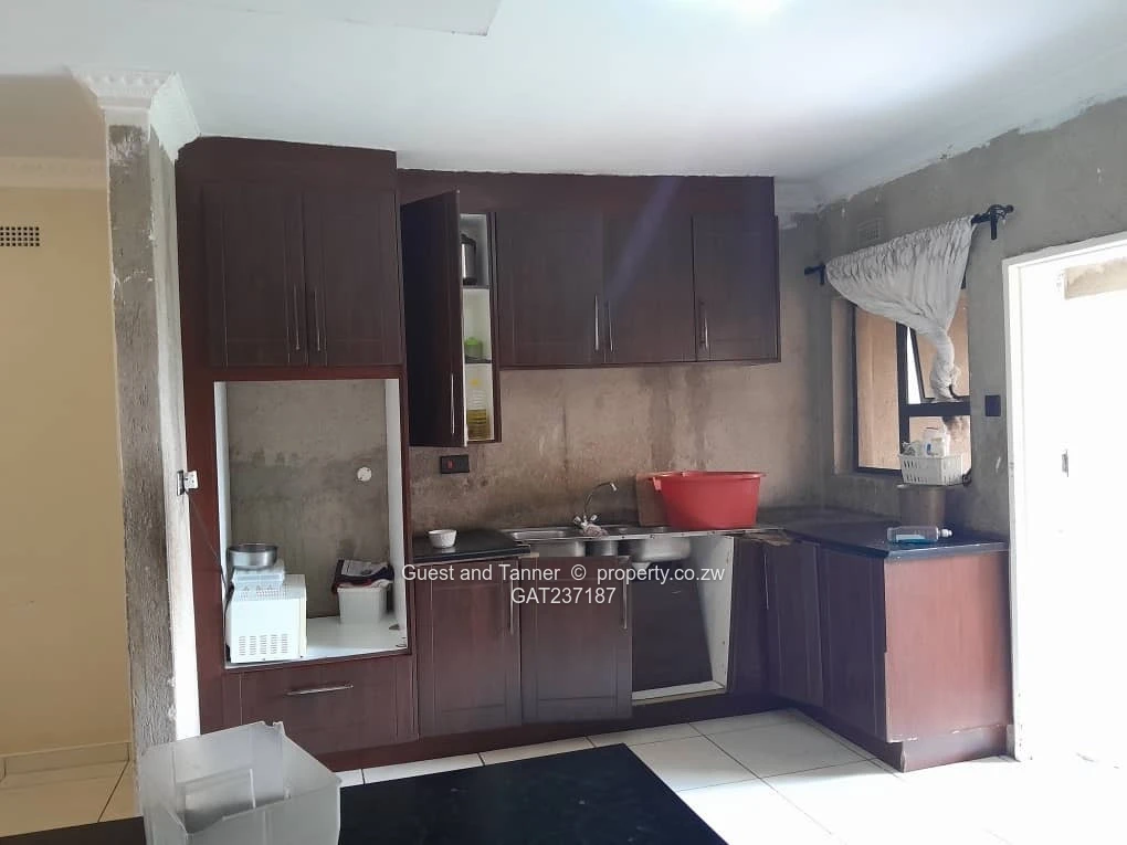 This Highlands house offers a solid foundation for your dream home. The fitted kitchen is functional, though some touch-ups are needed. A pantry room is available, awaiting your shelving solution. The spacious dining and lounge areas provide ample space for relaxation and entertainment. The property boasts 3 bedrooms, with 2 fitted and 1 awaiting your finishing touches. An ensuite is attached to the main bedroom, complemented by a family bathroom and separate family toilet. Note that the bathroom walls require painting. An outside toilet adds convenience. The property features a solar geyser, paved areas, and a borehole, ensuring a steady water supply. A water tank provides additional storage. No front durawall is present, offering opportunities for customization.