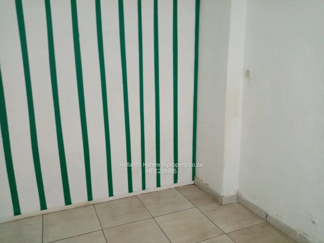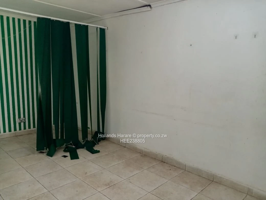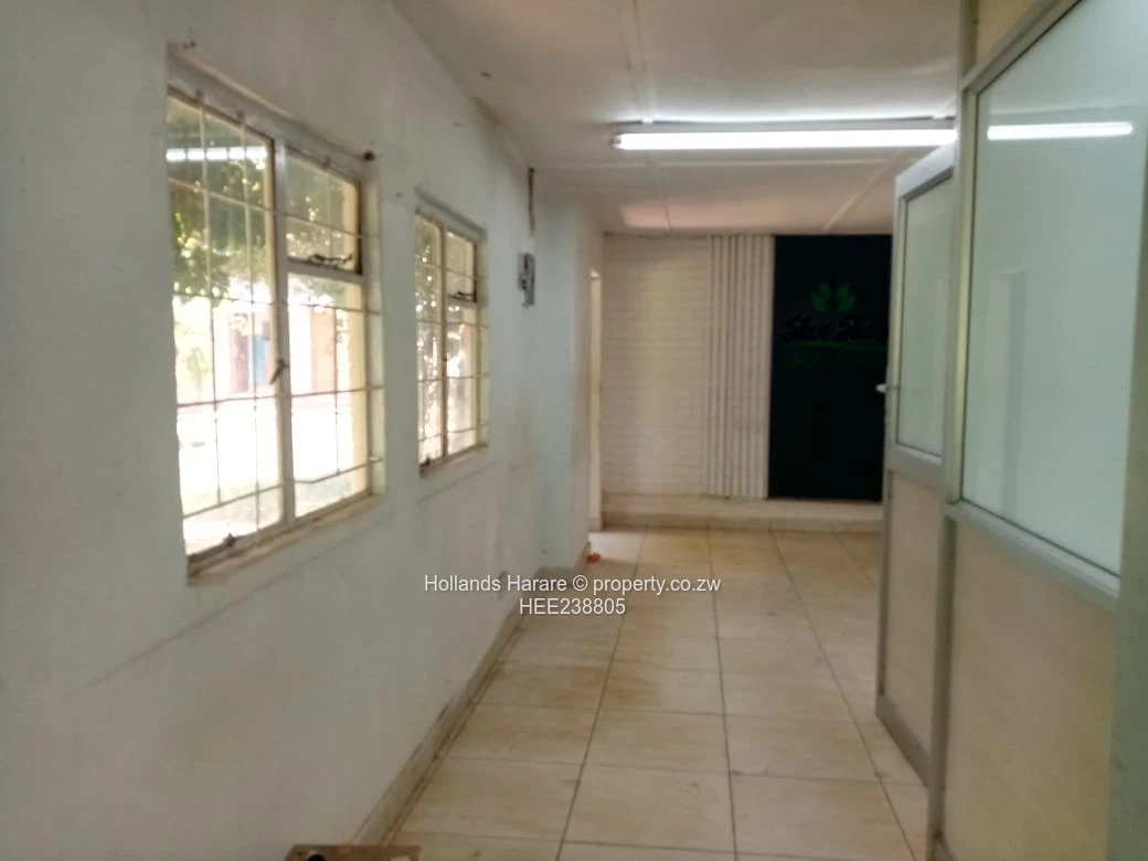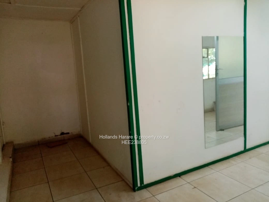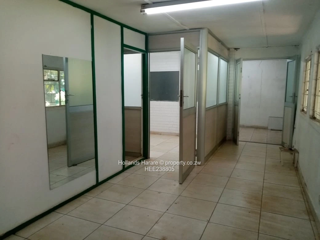1 big room and a smaller room. Partitions optional. Borehole water.