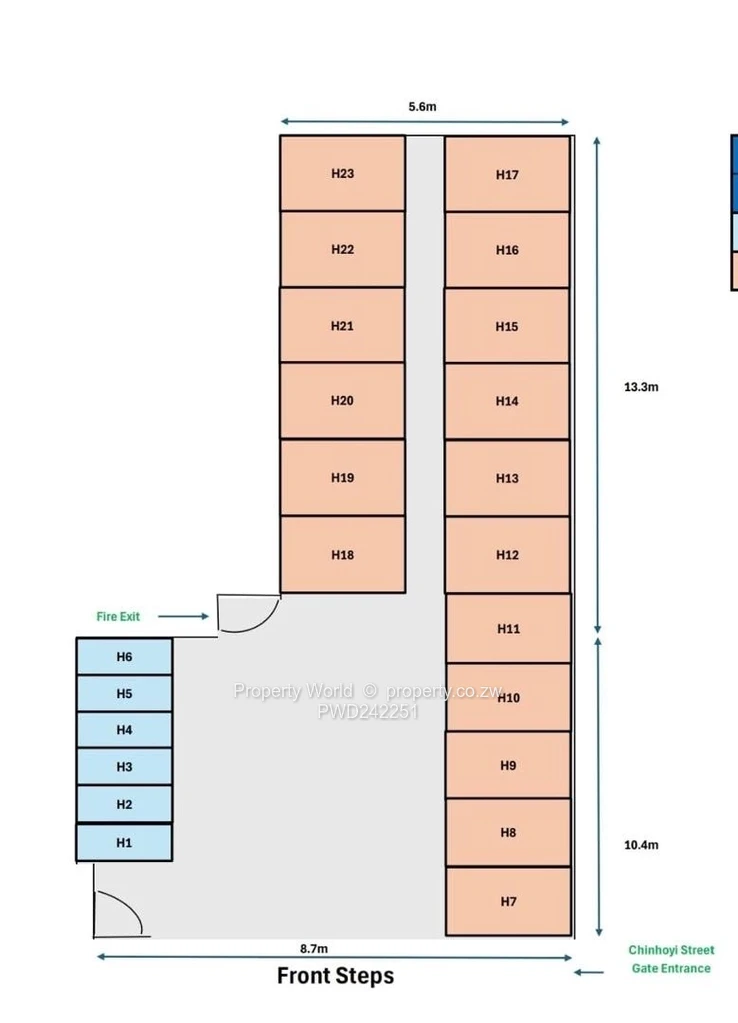 Available storage units at the corner of Chinhoyi Street and Charter Road measuring the below: