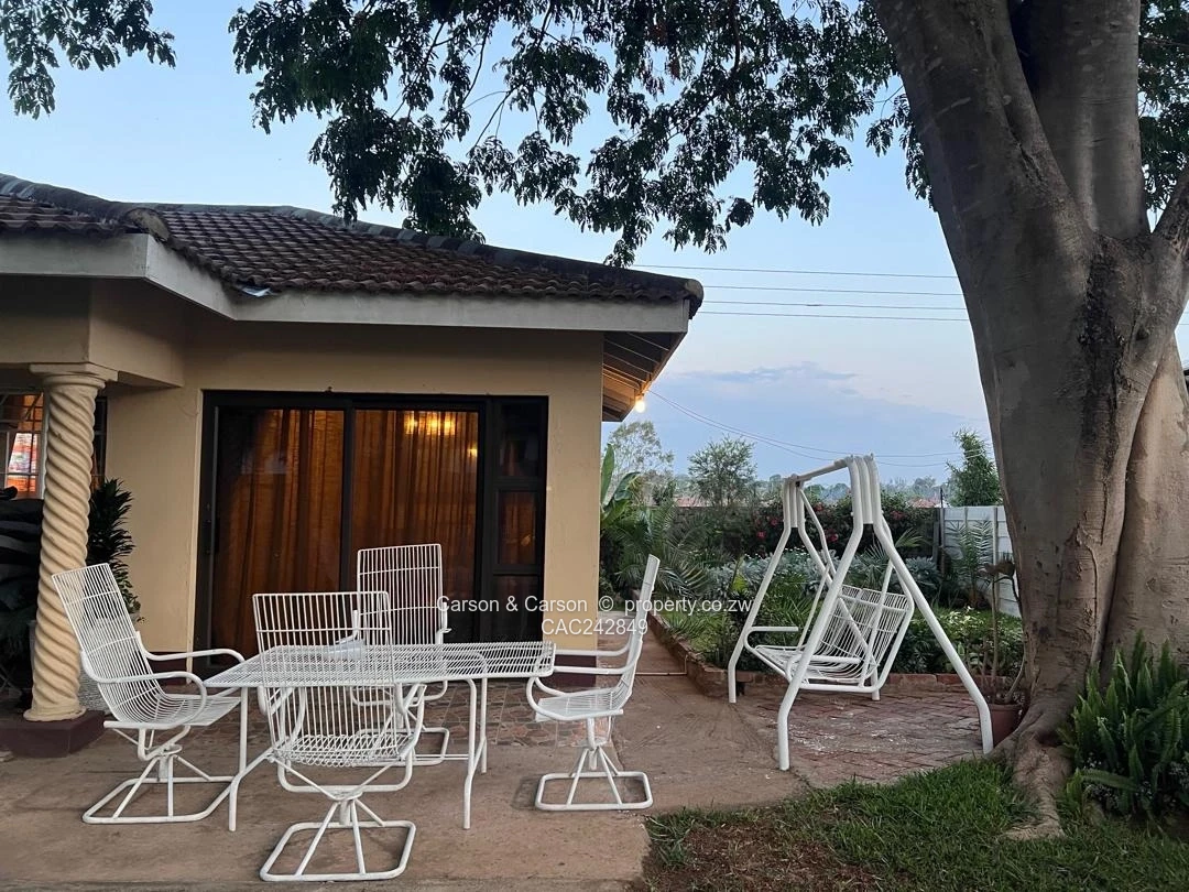 Charming fully furnished 3-bedroom, 3-bathroom cottage for rent in The Grange, Harare North. Set on a generous comfortable living space, this single-level home blends character and convenience. Mature trees and a lush, well-kept lawn create a private, tranquil garden — complete with a quaint playhouse/utility structure and colourful flower beds as shown in the photos. A patterned paved driveway offers ample parking and leads to covered parking adjacent to the home. Inside, bright living areas open to an outdoor patio furnished with white metal seating and a swing—ideal for relaxed mornings and entertaining. Bedrooms are spacious and well-appointed, bathrooms modern and practical, and the property benefits from a reliable borehole ensuring steady water supply. Secure perimeter walls and window grilles provide peace of mind. Perfect for families or professionals seeking a move-in ready, with unlimited Wi-Fi, solar back up, peaceful residence in a convenient Harare North location close to shops and main routes. Available for immediate occupancy — contact us to arrange a viewing. Its fully furnished with almost everything that can a home be defined to be.