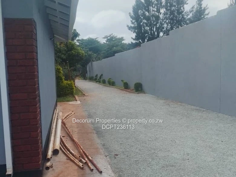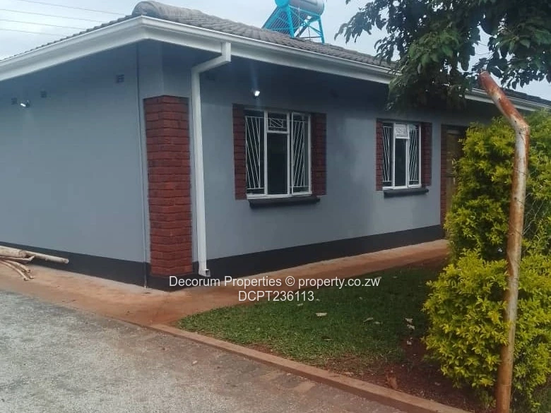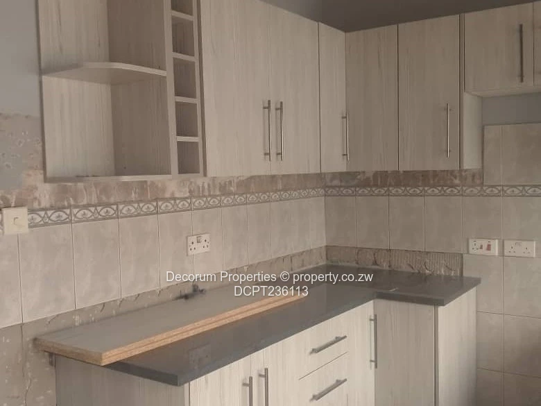 Charming 3-bedroom, 2-bathroom cottage for rent in The Grange, Harare North — freshly renovated and move-in ready. The property sits behind a high, secure boundary wall with attractive brick-inset detailing and a gated paved driveway. Inside, the modern kitchen features light-wood cabinetry, tiled splashbacks, stone-effect countertops and a double sink — perfect for home cooks. Bedrooms include built-in wardrobes and tiled floors; bathrooms are fully tiled and one includes a bathtub for relaxing soaks. Practical extras seen on site: external laundry sink, security bars on windows and a borehole with an elevated water storage tank providing reliable water supply. Clean neutral finishes and contemporary fittings throughout create a bright, comfortable home for a family or professionals seeking convenience and privacy in a well-established Harare North. Rent $900 per month.