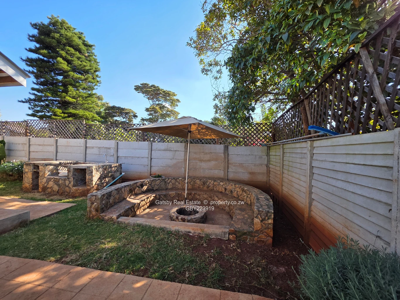 Outside, there is a comfortable entertainment area with a fire pit and a braai stand a treasure for outside entertainment, completed by a splash pool essential to cool off in the hot weather.