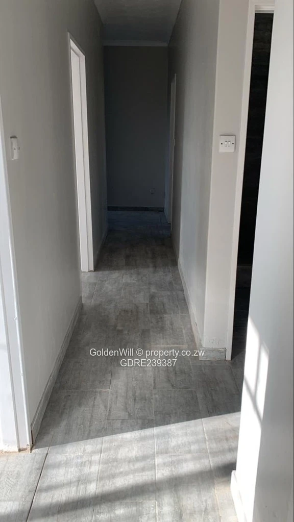 A Neat & Compact 3 bedroomed house with built-in cupboards, kitchen with fitted cupboards, fitted stove, lounge, dining room, bath/toilet, separate toilet, 5000ltr water tank, secure neighborhood,Electric fence, walled and gate. $770 inclusive of bills plus deposit payable in 2 months.