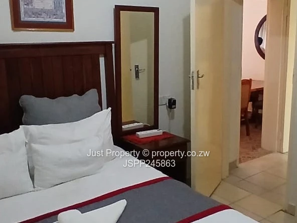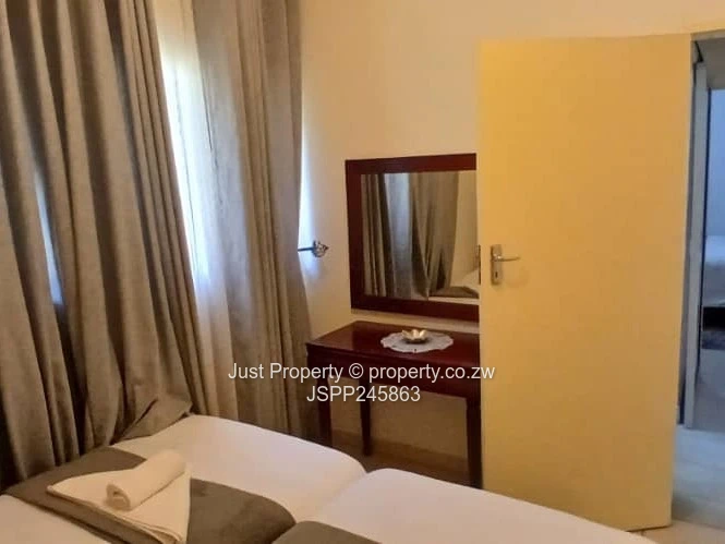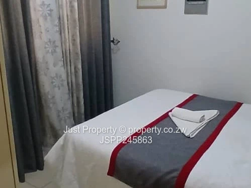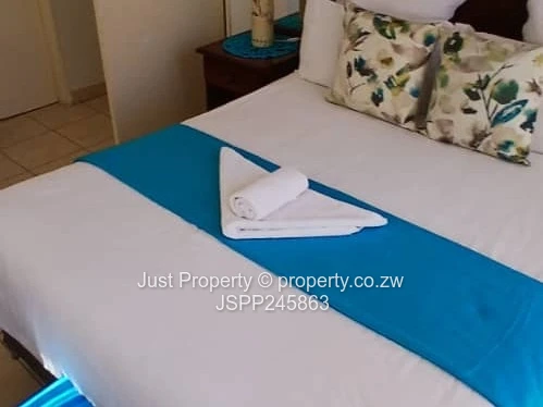Charming fully furnished 3-bedroom, 2-bathroom cottage for rent in Gunhill, Harare North. Set on a neat 350 m² stand with 100 m² of living space, this move-in-ready home blends comfort and low-maintenance living. The exterior is freshly painted grey with a secure walled courtyard and remote gate; a paved driveway and shaded parking area under a sail provide convenience and protection. Enjoy a small, sunny lawn with a wooden picnic bench—perfect for morning coffee or weekend braais—as shown in the photos. Interiors are tiled and well-appointed: cosy bedrooms with quality wooden headboards and bedside tables, a tidy dining area visible from the bedroom, and sliding glass doors that open to the courtyard letting in natural light. Reliable water from an on-site borehole ensures steady supply, and the property is fully furnished for immediate occupancy. Ideal for professionals or a small family seeking a secure, turnkey cottage in a convenient Harare North location. Lets view