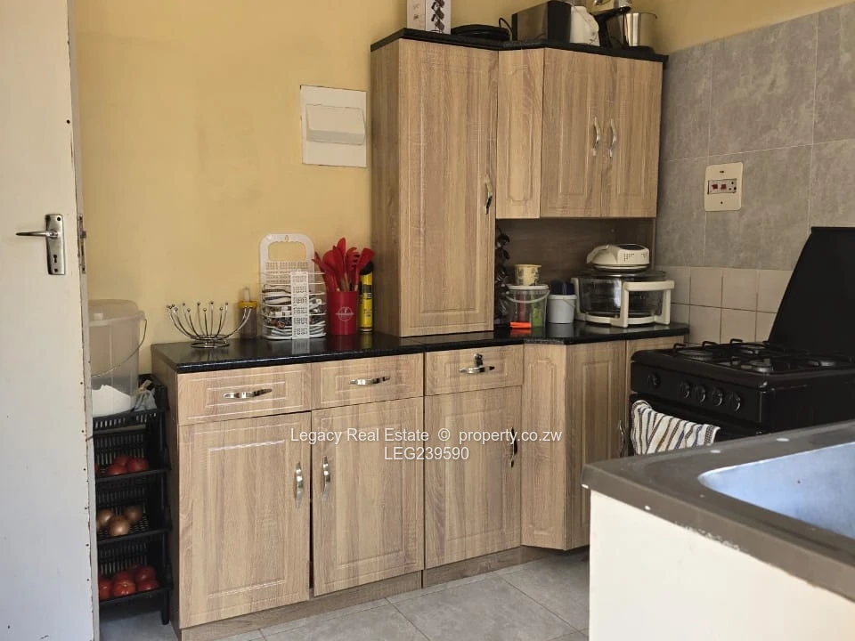 Neat and well-kept 3-bedroomed cottage offering a lounge cum dining area, a modern fitted kitchen, and a combined bathroom and toilet. The property features a verandah, borehole water, a solar geyser, and solar backup power. Fully walled and gated, it provides privacy and security in a convenient Bluffhill location.