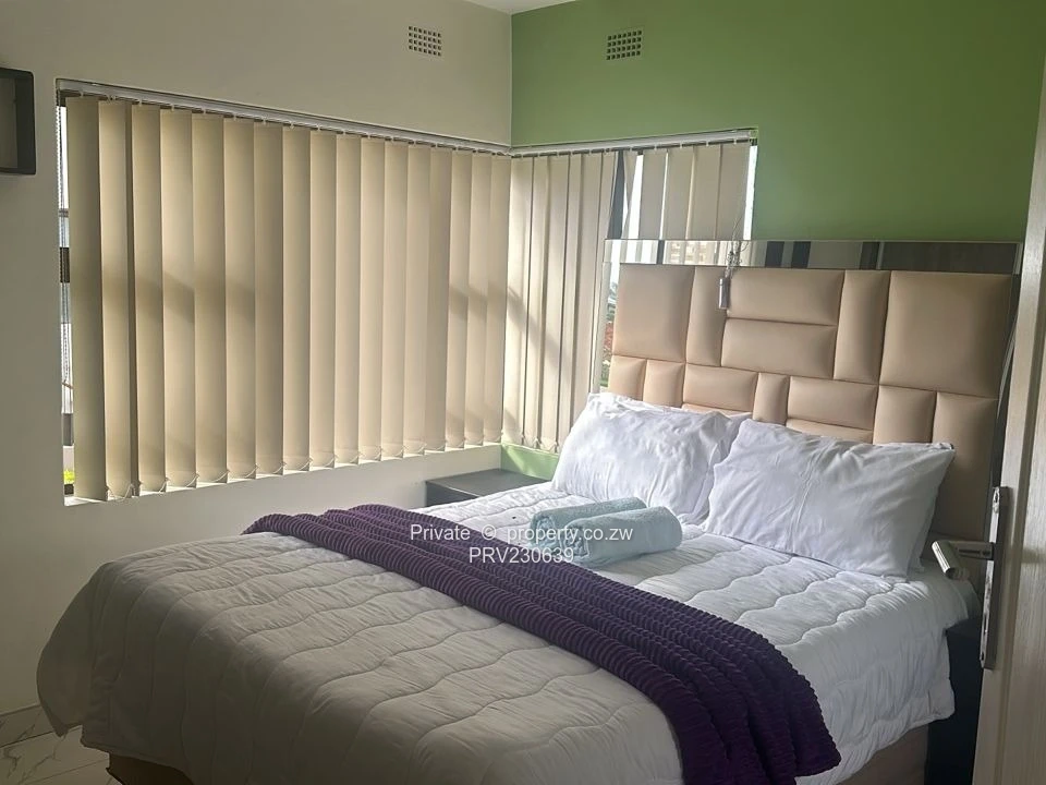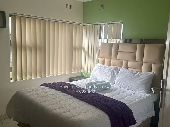 Description of property is: 3 bedroom furnished cottage main en-suite for rent in a secure and gated complex of Arlington Estate which is only 5 mins from the Airpot. Borehole water, back up solar and beautiful garden. Short stays of 2 weeks priced at $650