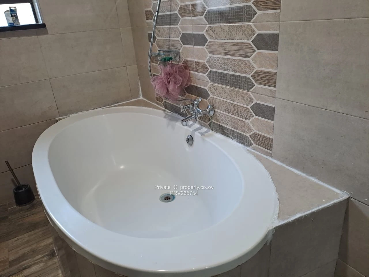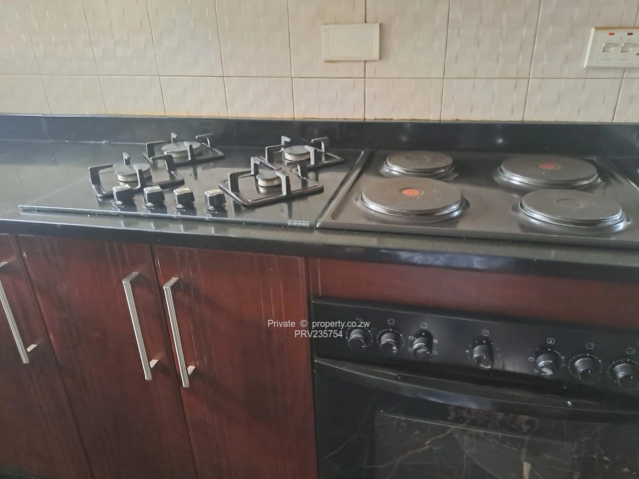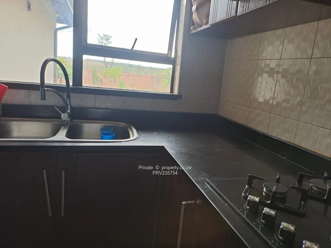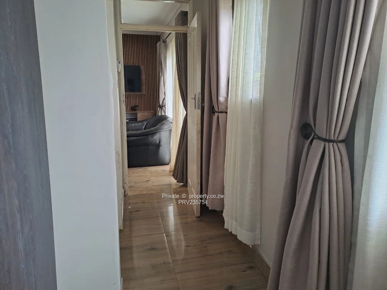 Neat 3 bed , 2 bathroom beds, 2 baths one ensuite, fitted kitchen with modern fittings, separate lounge, solar , very secure brick wall with razor wire, borehole water, available 1 Jan 2026. Curtains to remain.