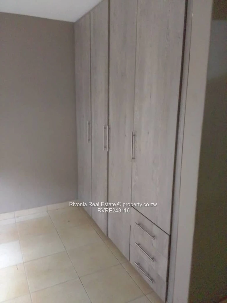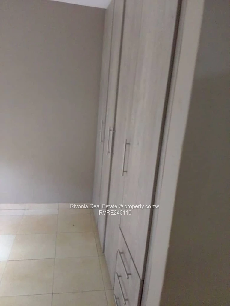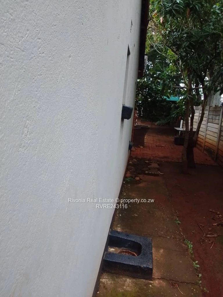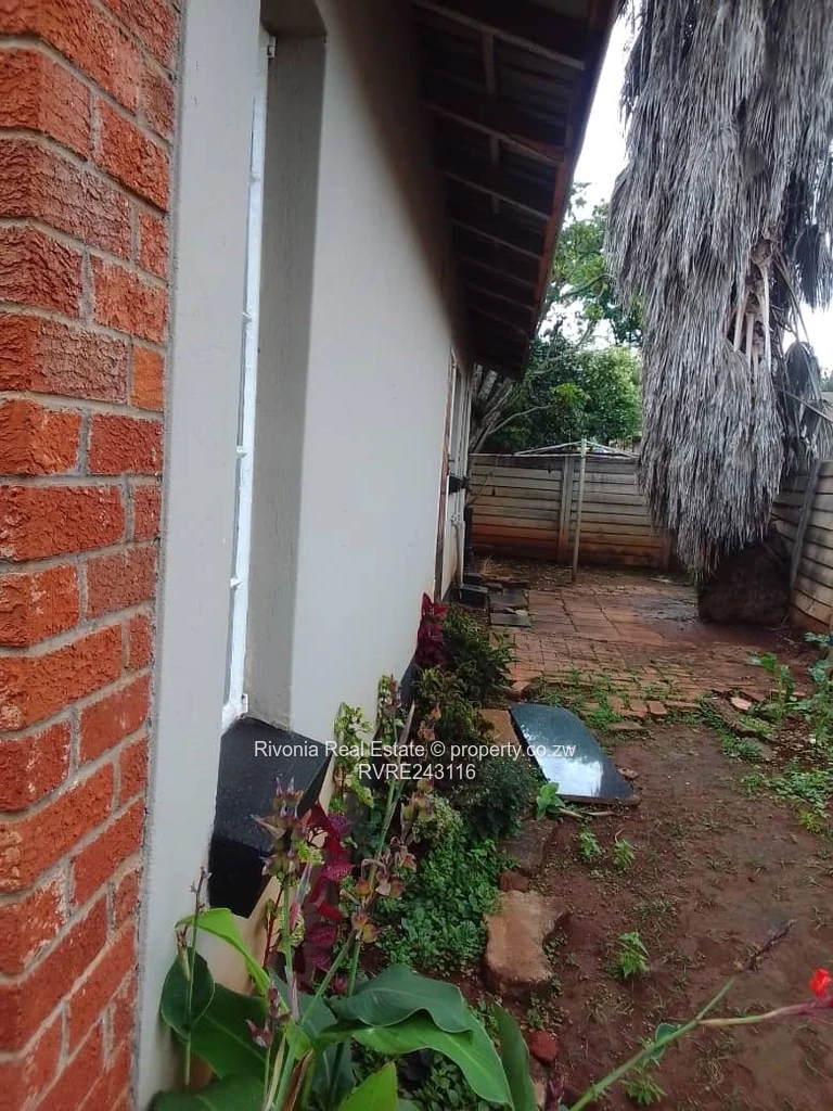 Charming 2-bedroom, 1-bath cottage for rent in Westgate, Harare West — set on an 800 m² plot with a comfortable 200 m² building footprint. The home greets you with classic exposed red brick elevations and a covered front porch that overlooks a neat, green lawn — ideal for relaxing or small-scale gardening. A paved side passage provides easy access around the house and a private backyard with established trees for shade and privacy. Inside, the bathroom features practical light-blue tiled finishes and a functional shower. Windows fitted with sturdy frames let in natural light while the plastered interior walls offer a clean canvas to personalise. Reliable water supply is ensured by an on-site borehole, a major advantage in this area. With generous outdoor space for parking, play or entertaining and a secure, walled perimeter, this cottage is perfect for a small family or professionals seeking quiet, convenient living in Westgate. Contact us to arrange a viewing.