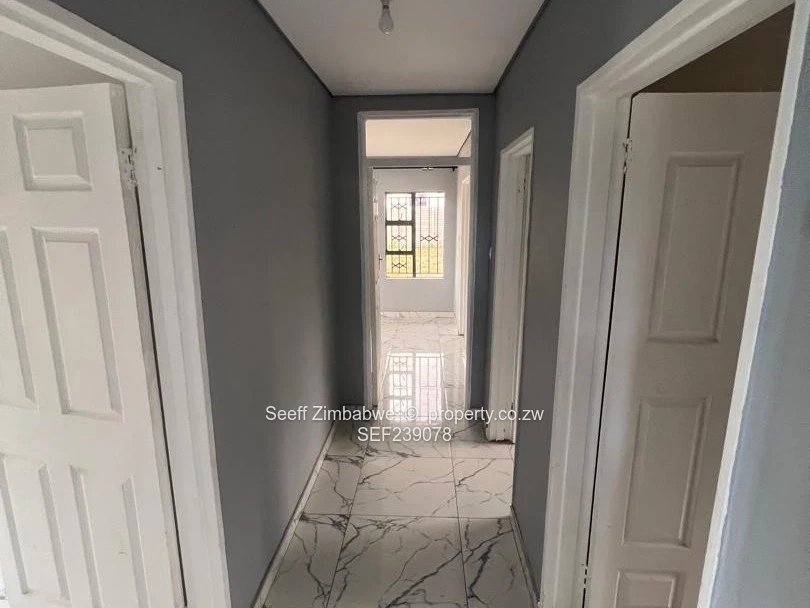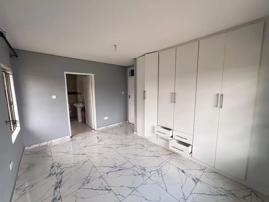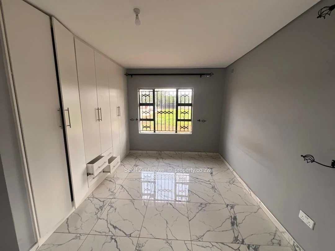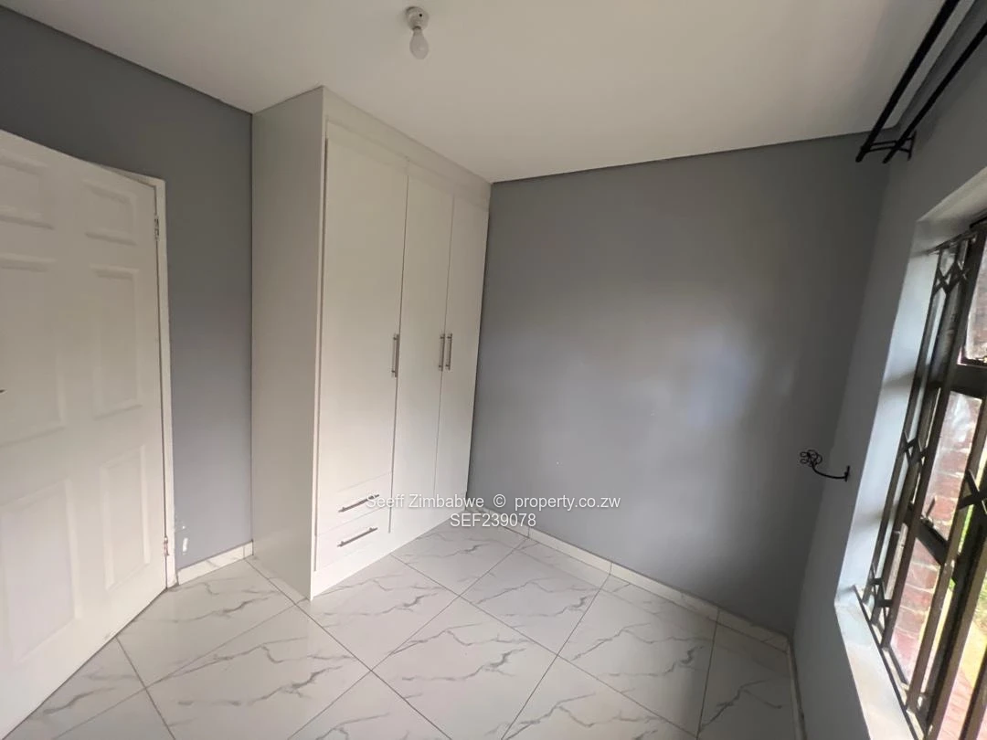 This neat and well-maintained standalone cottage in the sought-after suburb of Strathaven offers comfortable and secure living with no main house on the property, ensuring full privacy. The home features a tiled lounge with painted walls and ceiling, complemented by sliding doors that open to the outside. The kitchen is fitted with functional units and a sink, with a separate door leading outdoors. A tiled passage connects the living areas to the bedrooms. There are two well-sized bedrooms with built-in cupboards, tiled floors, and painted walls and ceilings, while the main bedroom also includes built-in cupboards and a private en-suite fitted with a shower, tub, and pan and seat. The family bathroom is equipped with a sink, pan and seat, and a shower tub combination. The property runs on solar backup with no ZESA electricity, and is further enhanced by a solar geyser, borehole, and water tank for reliable water supply. Additional features include a paved driveway, a walled and gated yard for security, and staff quarters with a caretaker on site.