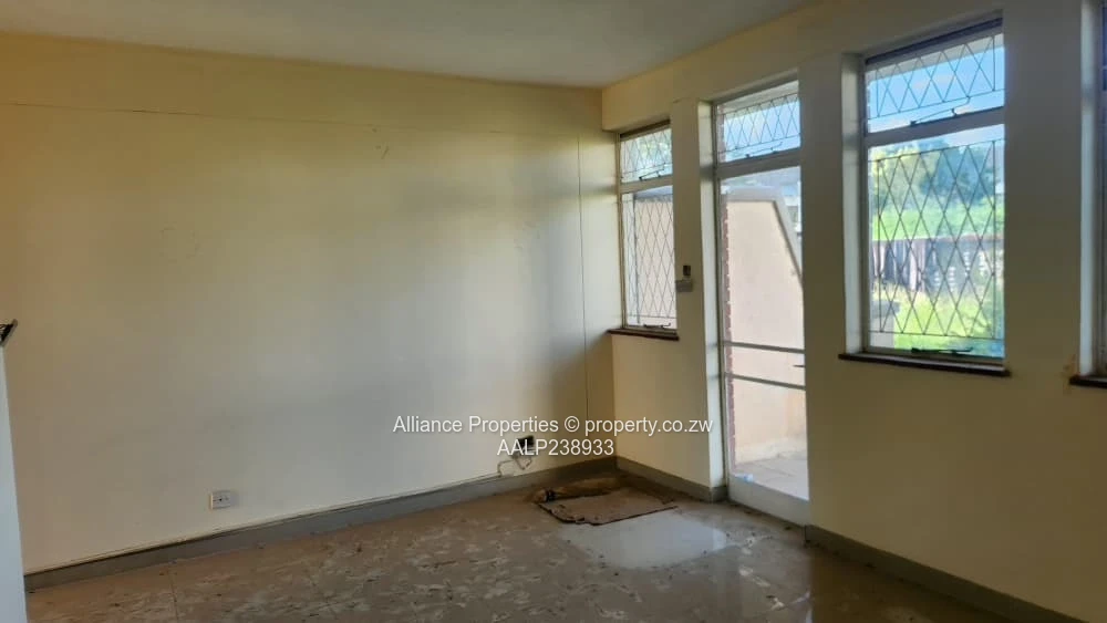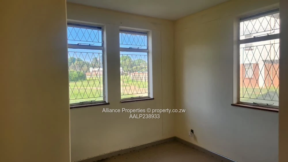 Fresh on the market in Eastlea, Harare East — a bright and practical 2-bedroom, 1-bath ground-floor apartment ideal for a small family or professionals. Set on a 150 m² plot with a 100 m² living area, the flat opens into a light-filled lounge with large diamond-grilled windows that frame views over the communal green and flood the space with natural daylight. The compact kitchen and living area lead to a small covered entrance patio perfect for morning coffee. Bedrooms are well-proportioned with the same generous windows and secure steel grilles for peace of mind.