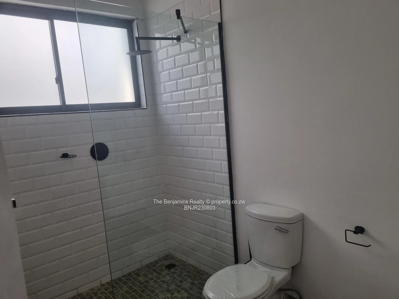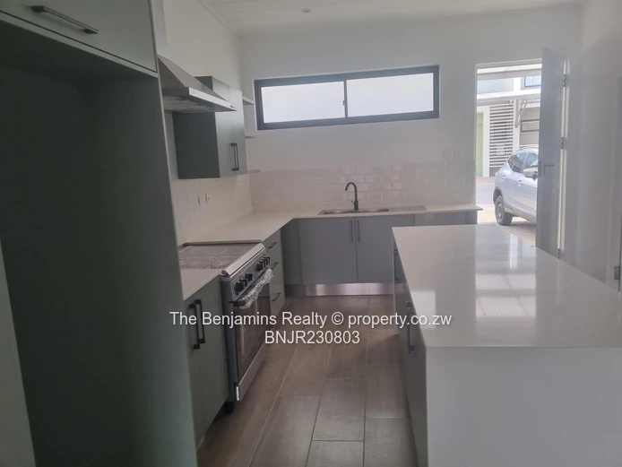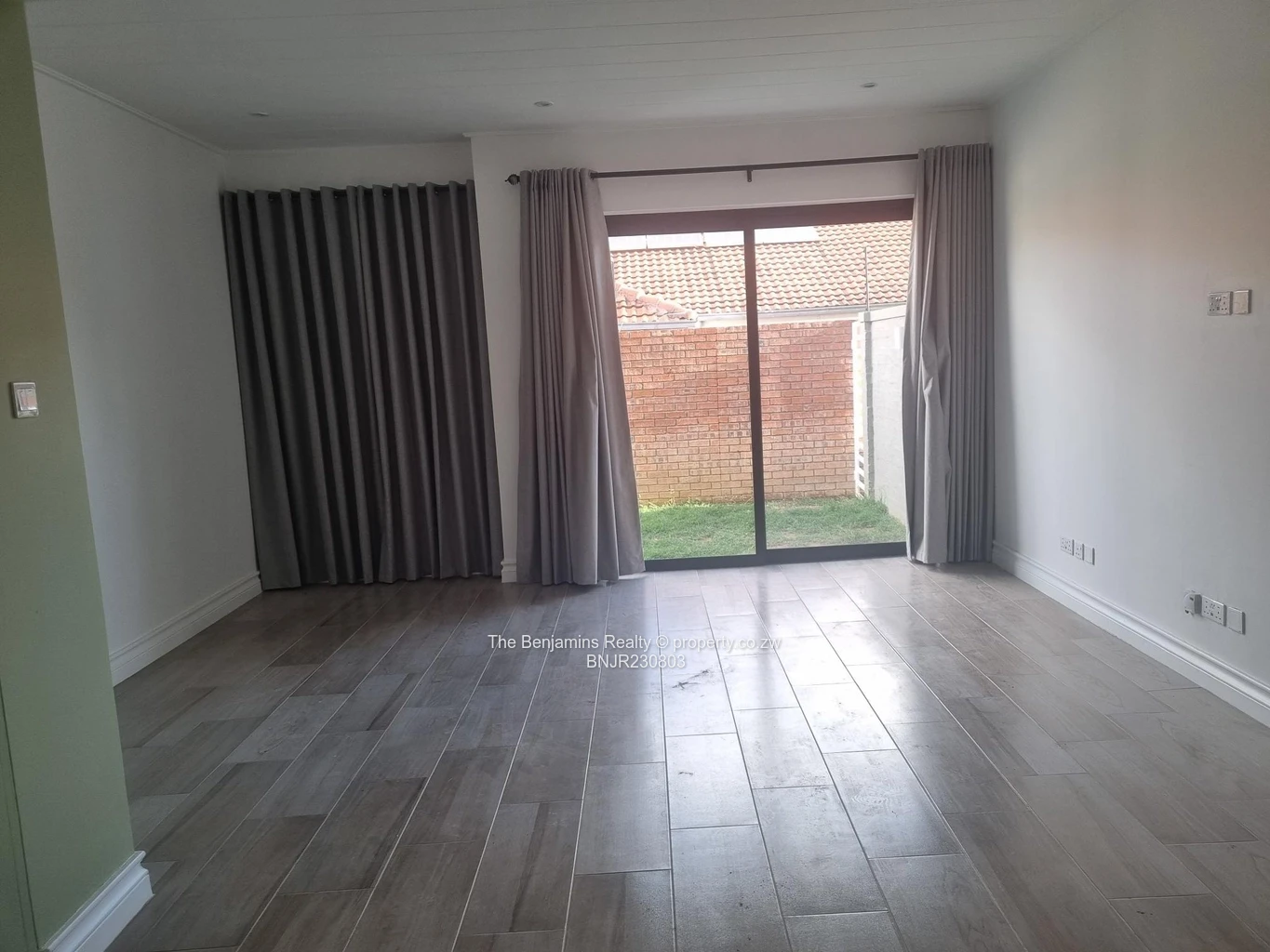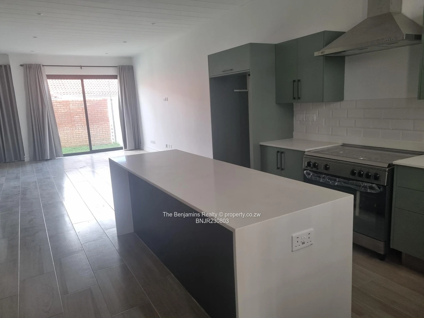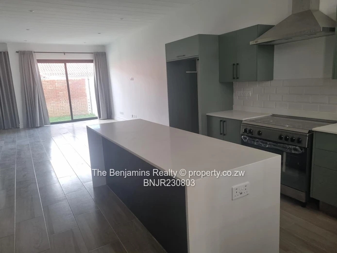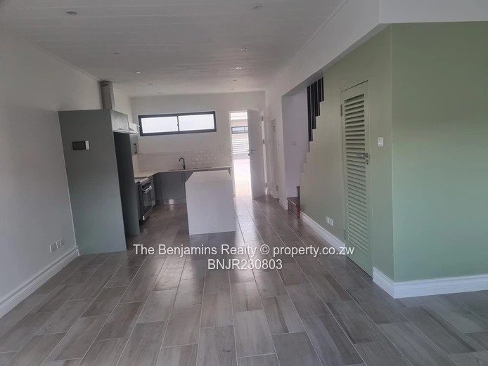 Modern – great pad. Duplex. High ceilings – tiled – curtained. Great security – high walls, electric fence, 24 hour manned gate. Position is perfect – right close to the amazing Vic 22 restaurant in Newlands– close to everywhere. Open plan kitchen has a gas cooker installed and an island perfect for preparation or for using as an eating area. Lounge is spacious with a dining area. French doors open into small private garden area. Guest toilet. Upstairs there are two bedrooms. Main bedroom has a small balcony and bathroom en suite. Second bedroom and separate bathroom. 5kva good solar inverter and borehole.