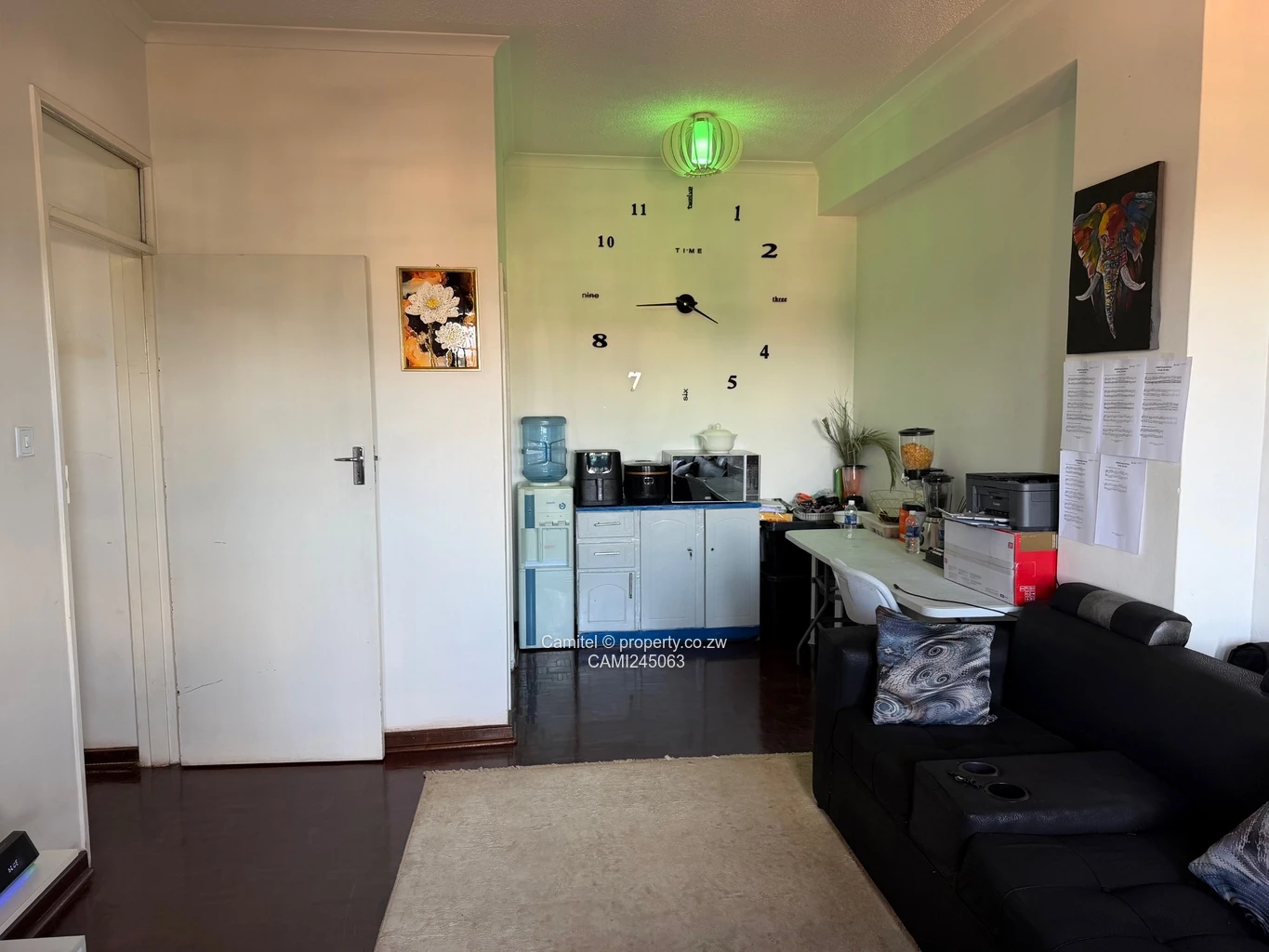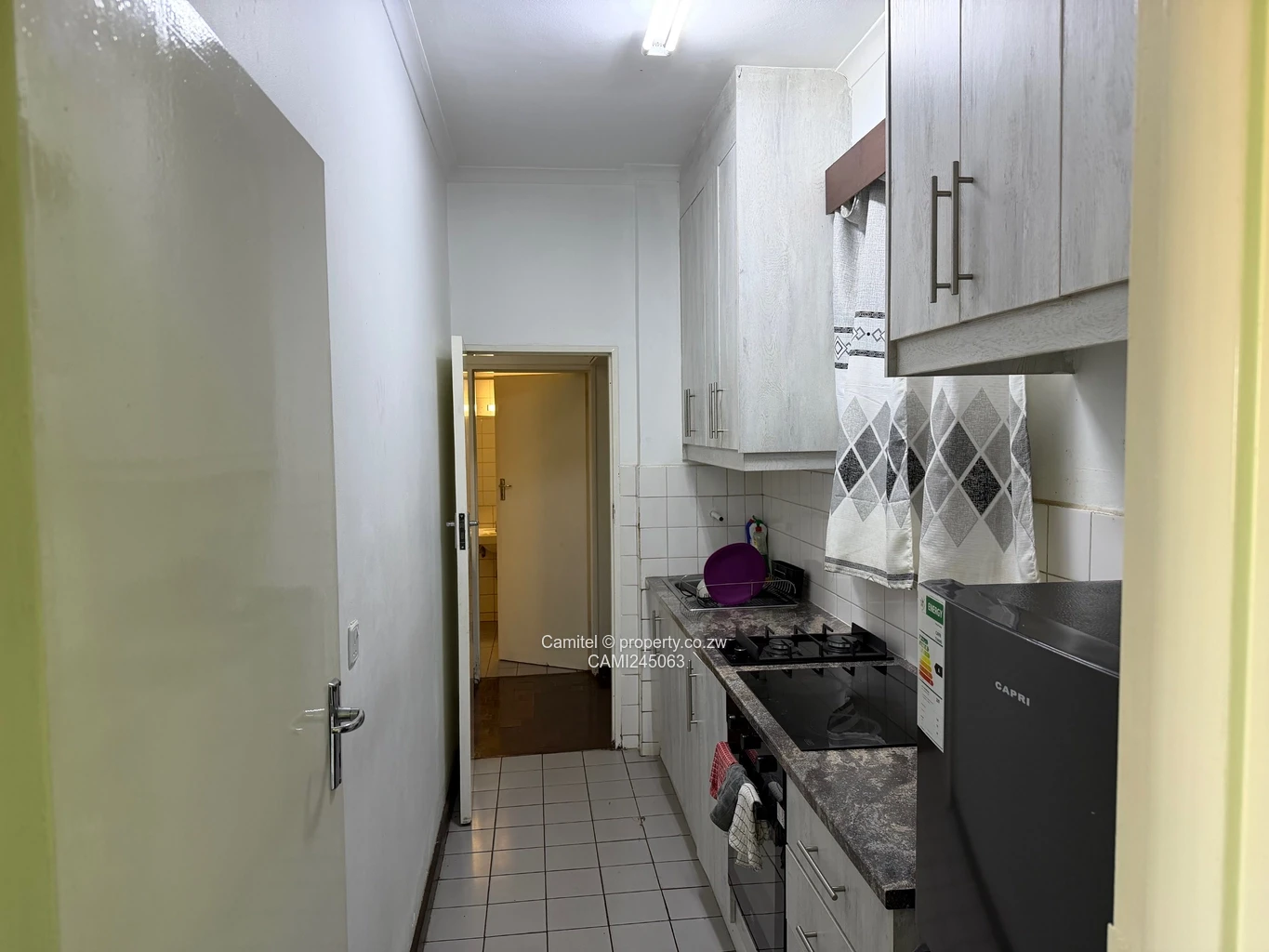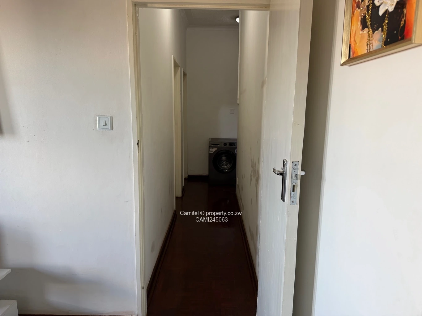Bright 2-bedroom with fitted cupboard,1-bath apartment in the heart of Avenues, Harare CBD — perfect for professionals or a small family. Set on a 153 m² stand with a compact 75 m² footprint, this unit benefits from a reliable borehole supply for peace of mind. As seen in the photos, a tidy galley kitchen with fitted cupboards, tiled floor, a freestanding stove and space for a fridge offers efficient meal prep. The living area features polished parquet floors, a comfortable lounge layout and a feature wall clock that adds character. A long, well-maintained hallway leads to two good-sized bedrooms and a bathroom with full bathtub and tiled surrounds. Practical conveniences visible in the images include a laundry area/space for a washing machine. Located close to shops, banks and transport links in the CBD, this apartment delivers low-maintenance city living with dependable water access — move-in ready and competitively sized for central Harare.