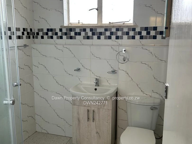 Charming 2-bedroom, 1-bath flat for rent in sought-after Avondale (Harare North). Set in a quiet, tree-lined complex with single garages and paved driveways, this duplex-style apartment greets you with a generous open-plan living area featuring polished parquet floors, a cosy fireplace, large secured windows with curtains and a ceiling fan — perfect for entertaining or relaxed family living. A modern kitchen has crisp white cabinetry, marble-look tiled walls and dark stone countertops for a fresh, practical finish. Upstairs the two bedrooms are bright and well-proportioned, served by a neat bathroom. Secure grounds, well-tended communal lawns and off-street parking add convenience. Important: the property is supported by a borehole, giving reliable water supply. Ideal for professionals or a small family seeking comfort and security in central Avondale — contact us to arrange a viewing.
