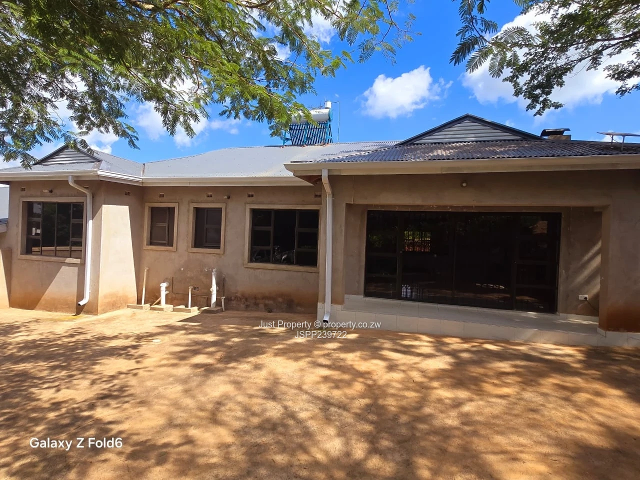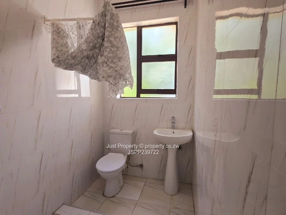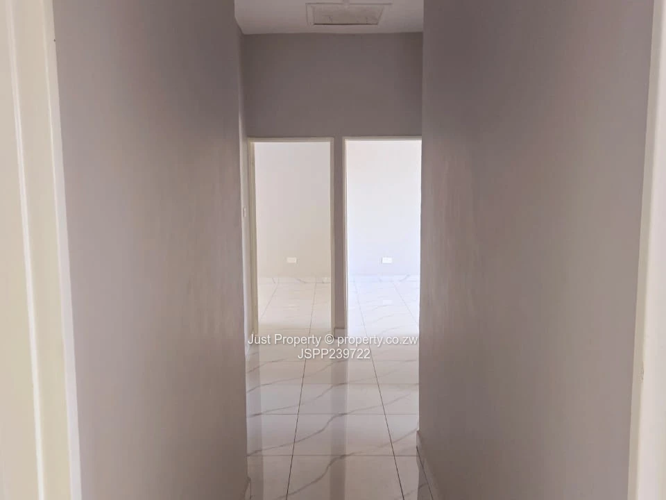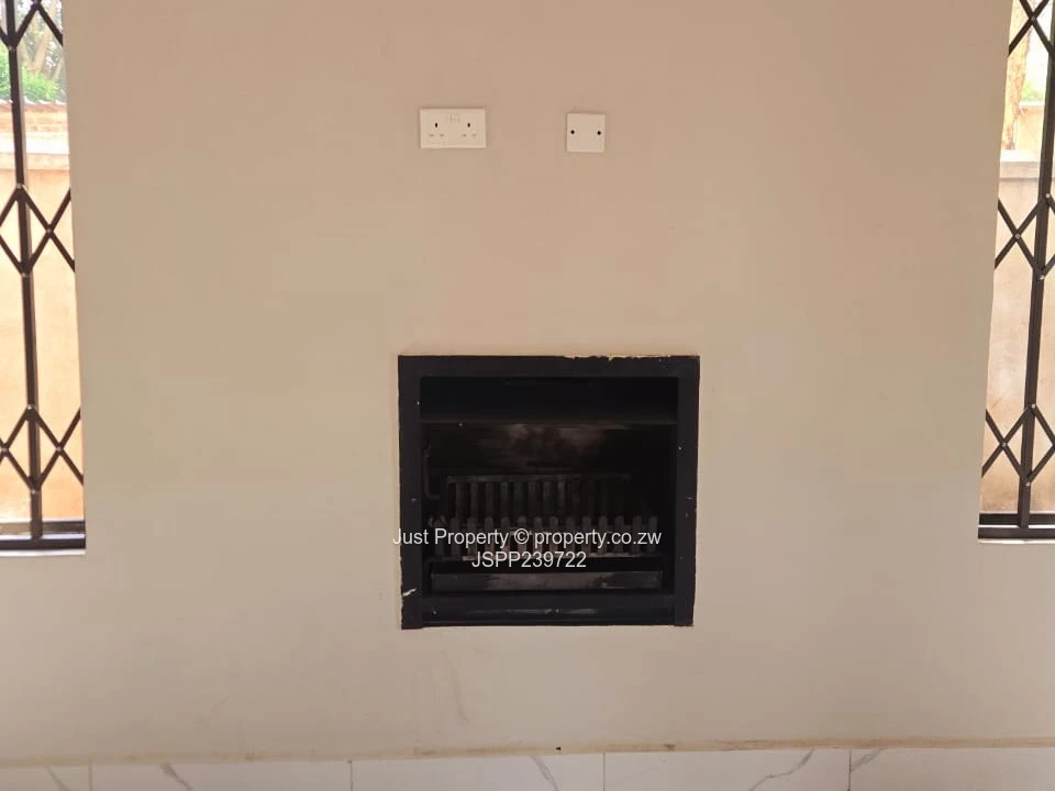 Bright, secure and freshly renovated 4-bedroom, 4-bathroom flat in Gletwin Park, Harare North — perfect for a family or professionals seeking convenience and low-maintenance living. Set on a compact 250 m² stand with an 85 m² building footprint, this home makes clever use of space: an airy open-plan living and dining area flows into a modern kitchen with white fitted cabinetry and sleek black countertops (as seen in the photos). Polished marble-effect floor tiles reflect abundant natural light through generously sized windows with security grilles. Features include a built-in fireplace inset, multiple bathrooms for family convenience, a neat private yard with a small lawn and paved areas ideal for parking or entertaining, and a sturdy stone boundary wall offering excellent privacy and security. A borehole and rooftop solar water/heating system visible in the images ensure reliable water supply and running-cost savings. The exterior shows well-kept grounds and a practical layout for everyday living. Located in a quiet Harare North neighbourhood with easy access to local amenities, this clean, move-in ready apartment offers comfortable, secure living — contact us to arrange a viewing.