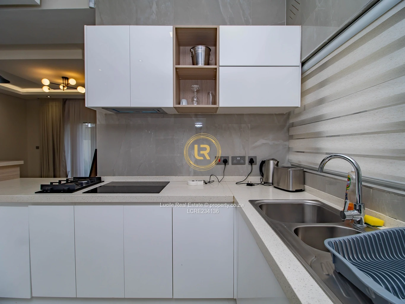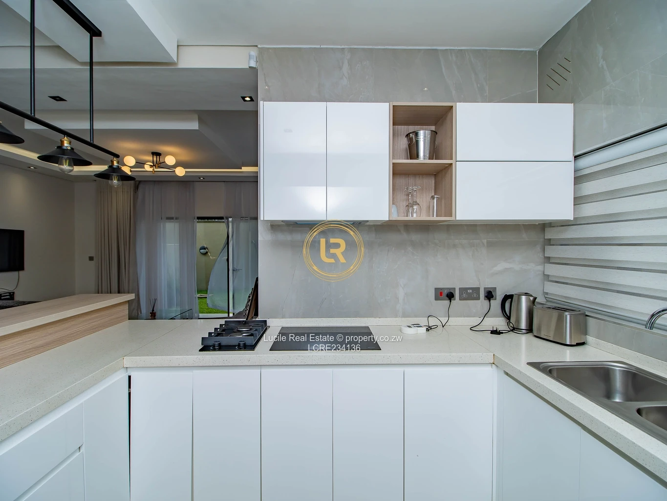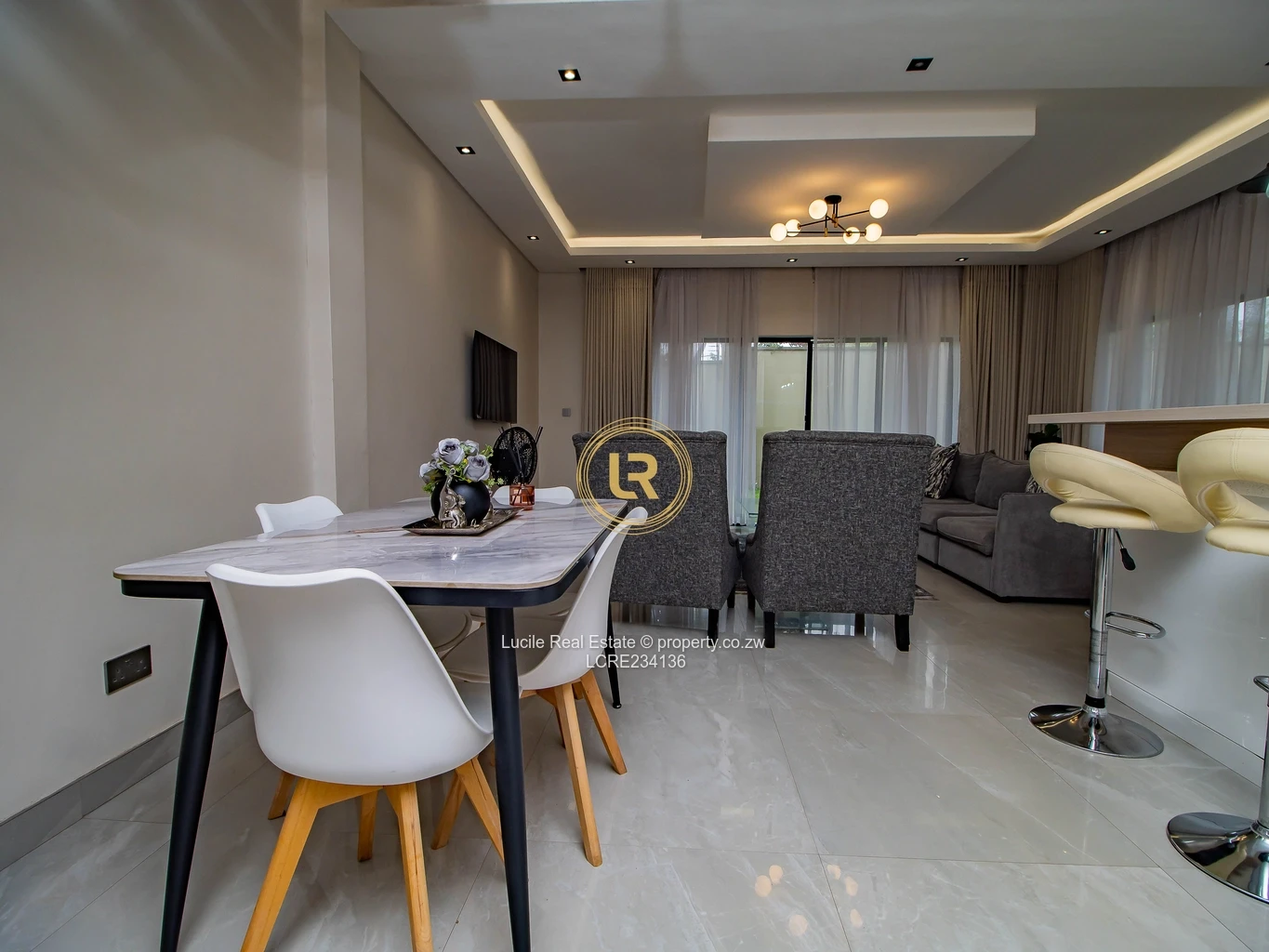 This modern 3-bedroom duplex flat in Pomona offers a blend of comfort and style, featuring a main bedroom with an ensuite bathroom. The family bathroom is perfect for guests, while the open-plan kitchen showcases sleek, modern fittings, ideal for cooking and entertaining. The property includes a private garden, providing a serene outdoor space to relax or host gatherings. With amenities such as a 24/7 water supply, backup solar power, and access to a gym. Its prime location close to Harare Drive ensures easy access to various local amenities, making it a perfect home for those seeking both convenience and comfort.