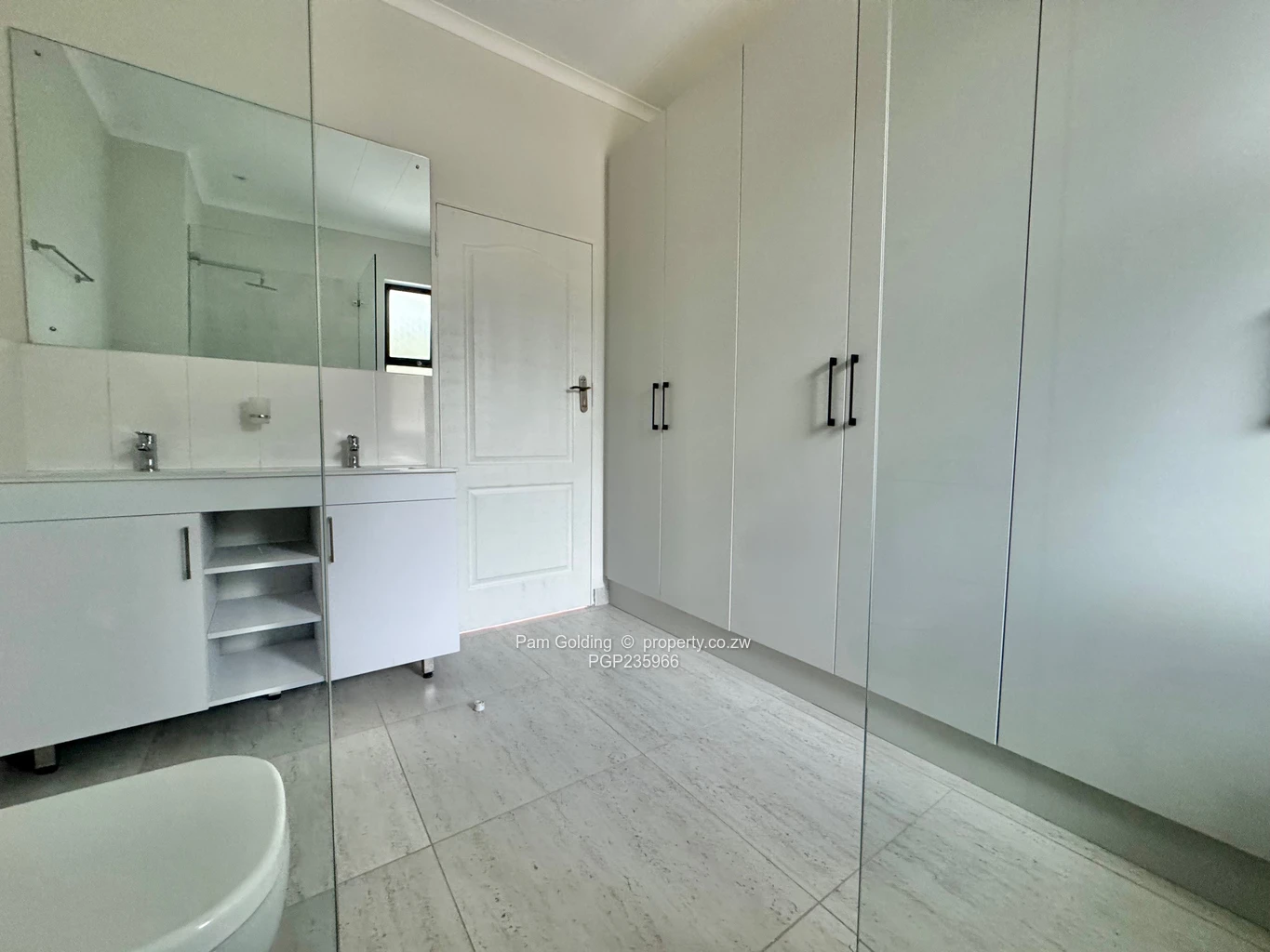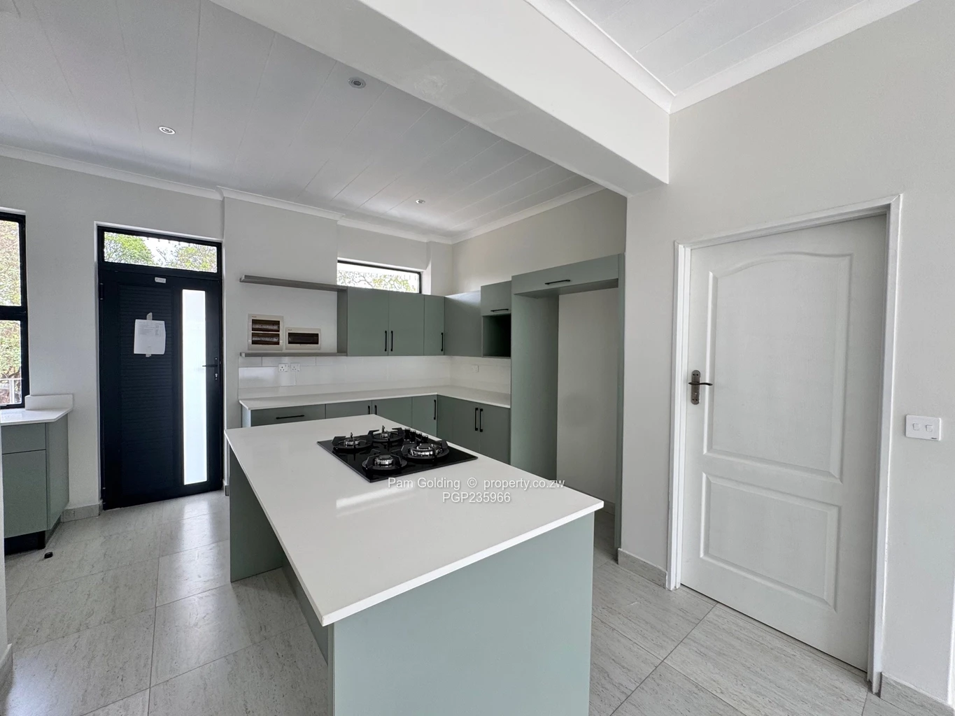 A stylish and modern unit featuring a well-appointed fitted kitchen with a scullery, flowing into an open-plan lounge and dining area that leads out to a balcony. The main bedroom en-suite bathroom, while the second bedroom is serviced by a separate bathroom/guest bathroom.