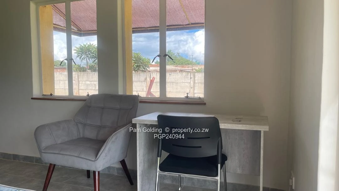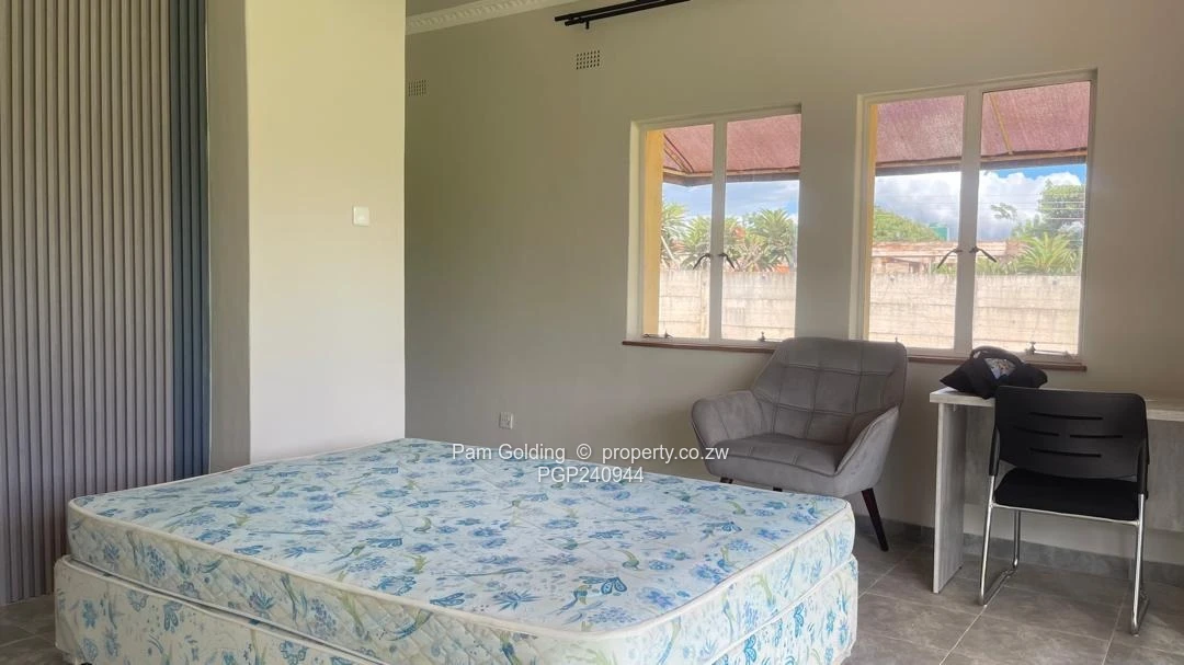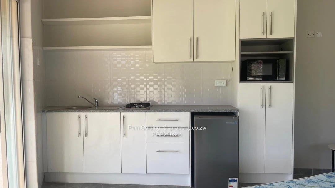 Modern bedsitter with a lovely garden available for rent in Mount Pleasant Heights. It comes with solar power, solar geyser, WiFi, borehole water, gas tank and carport. This bedsitter is furnished with a double bed, small fridge and a desk with a chair. Perfect for a single professional or couple.
