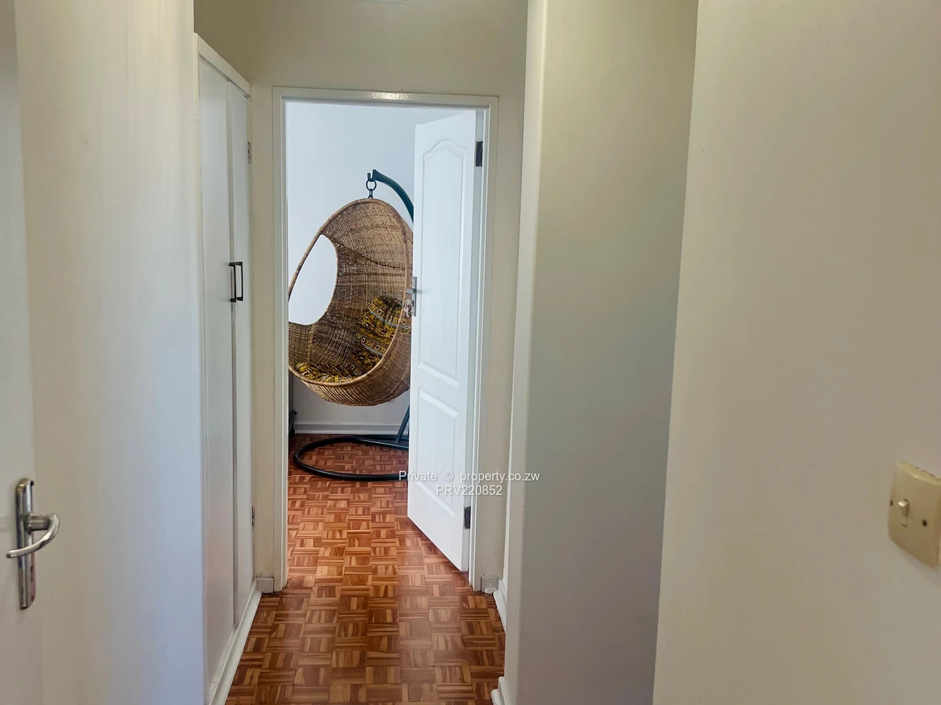 Available is a luxurious two bed apartment in a secure and well maintained complex close to the state house. The fully furnished apartment which is located on the 4th floor comprises two bedrooms with BICs, two bathrooms, office space, lounge cum dining, modern fitted kitchen, fireplace, newly tiled balcony overlooking the state house, and one covered parking bay. The apartment is serviced by two elevators and two staircases. The complex is located close to all major amenities, has 24-hour security services, a communal borehole, swimming pool, no power cuts.