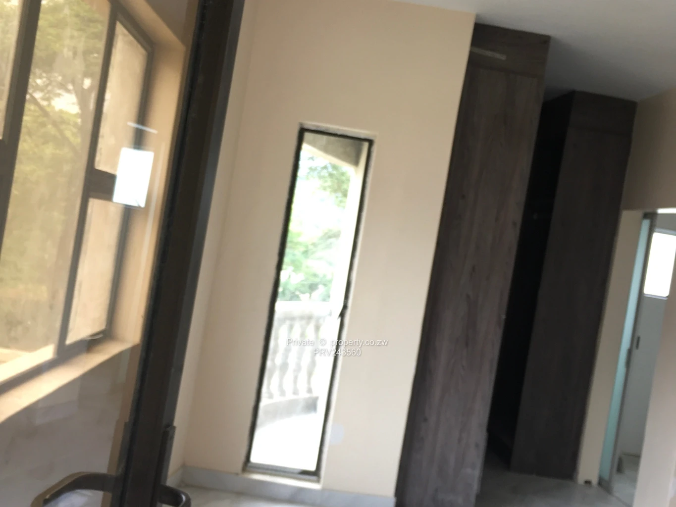 Spacious 3 bedroomed first floor flat in excellent condition. Main Ensuite. Spacious lounge. Nicely fitted kitchen. 24/7 hybrid power system made up of good ZESA and solar system. Prolific borehole and reserve tank with auto pumping system. Available 1 April 2026. Contact