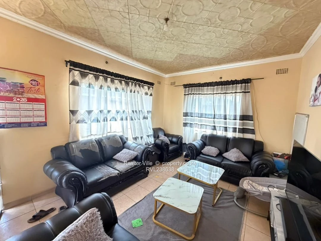 Bright, comfortable 2-bedroom flat to rent in Waterfalls, Harare South — perfect for a small family or professionals. This single-storey apartment sits behind a high boundary wall with secure parking in the yard (see exterior photos) and features tiled floors throughout, patterned ceilings and large windows with burglar bars that flood the lounge with natural light. The lounge is neatly presented with space for lounge and dining furniture; the compact kitchen comes with a double sink and room for appliances. There is one bathroom with tiled floor and practical fittings. The property benefits from municipal water plus an on-site water tank for reliable supply, and the compound is fully walled for added privacy, there’s a clear driveway for easy vehicle access. Well-maintained and move-in ready, this flat offers practical, affordable living in a convenient Waterfalls location. Call now to arrange a viewing.