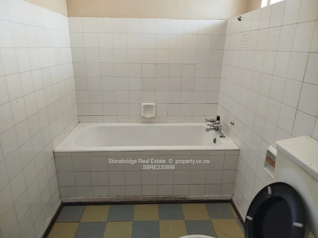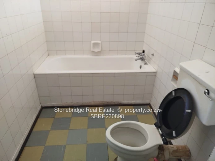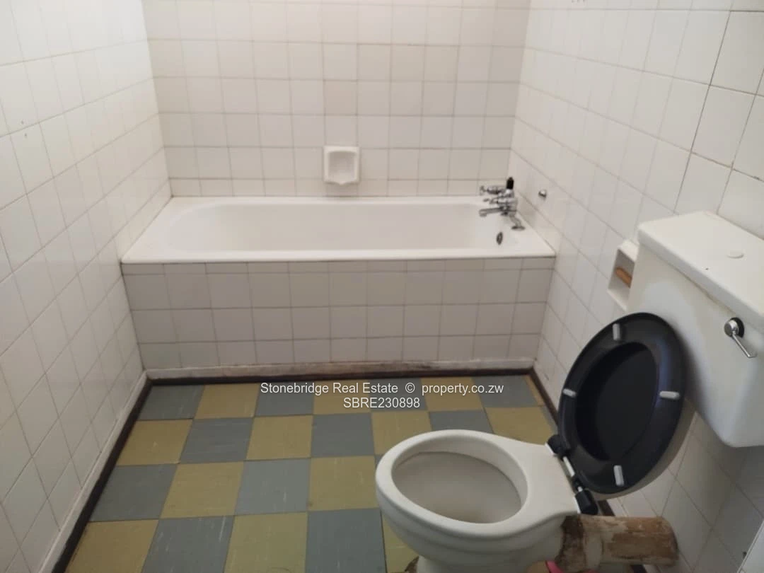 - Combined toilet and bathroom, tiled for ease of maintenance