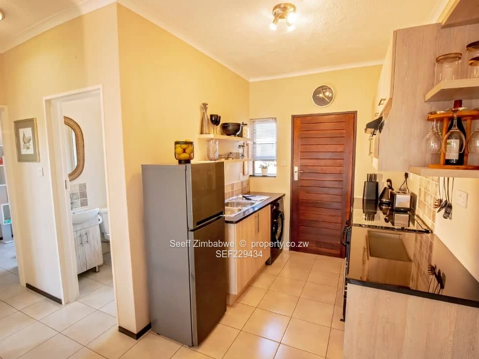 is two-bedroom flat is a true gem, offering a comfortable and convenient lifestyle within a secure, gated community. The open-plan lounge and dining area create a spacious and inviting atmosphere, perfect for both relaxing and entertaining. The modern, fitted kitchen is a chef's delight, complete with a stove and a fitted washing machine for your convenience. Stay connected with a pre-installed DSTV connection. The property also boasts a reliable borehole, ensuring a consistent water supply. Enjoy peace of mind with secure parking available for residents.