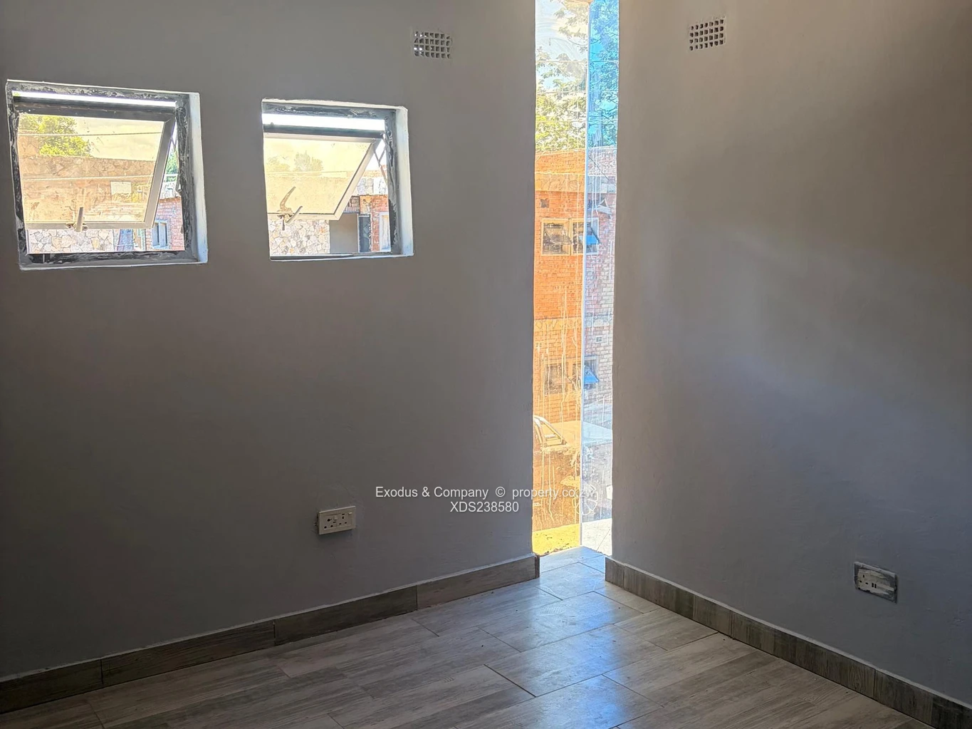 Newly built upstairs unit off Harare Drive. Open-plan lounge and kitchen with 4-plate gas stove and 2-plate electric stove. Main bedroom upstairs with ensuite, bath tub, shower, and fitted wardrobe. Each unit has its own 5000 L water tank with borehole supply. Common bathroom has shower only. 30 units in the secure complex.