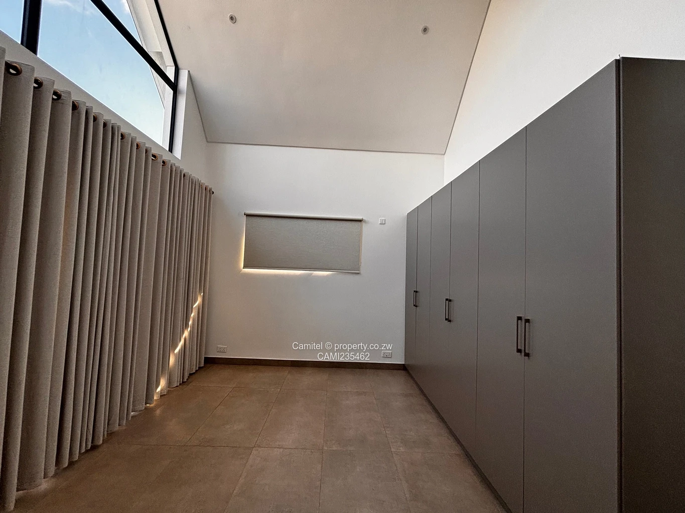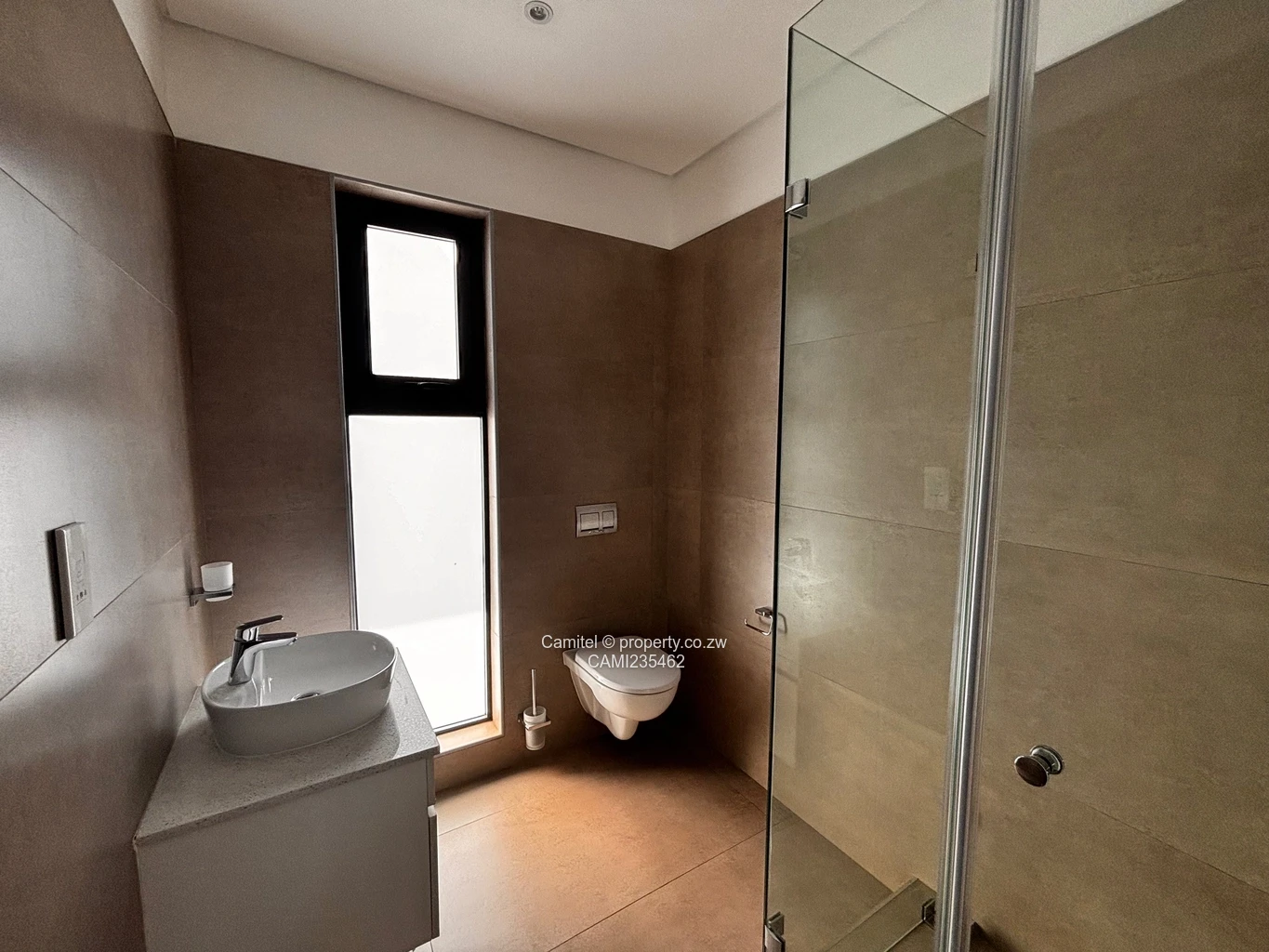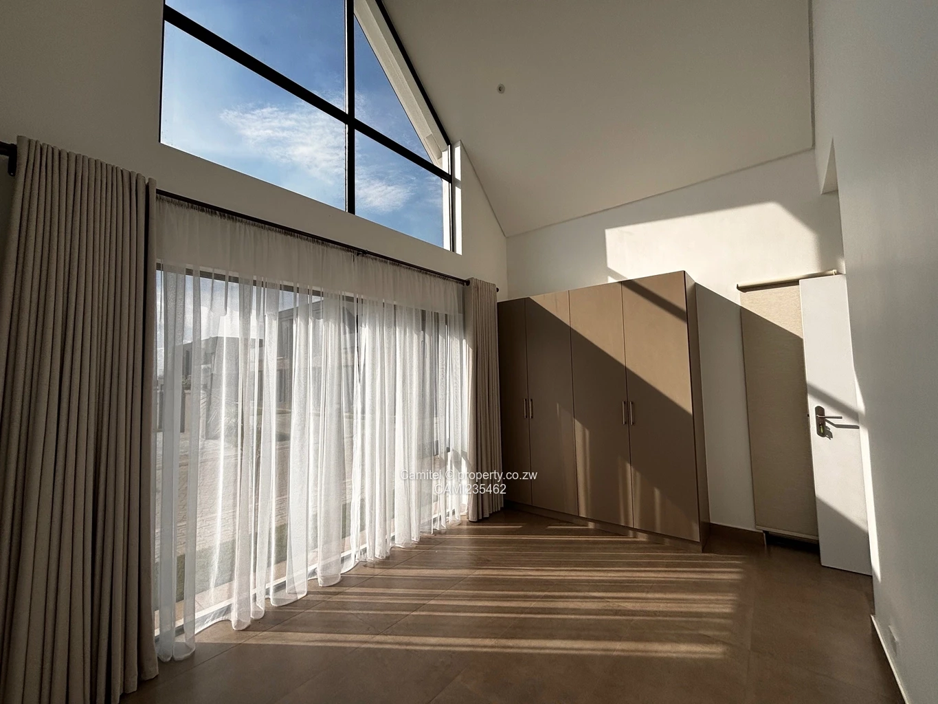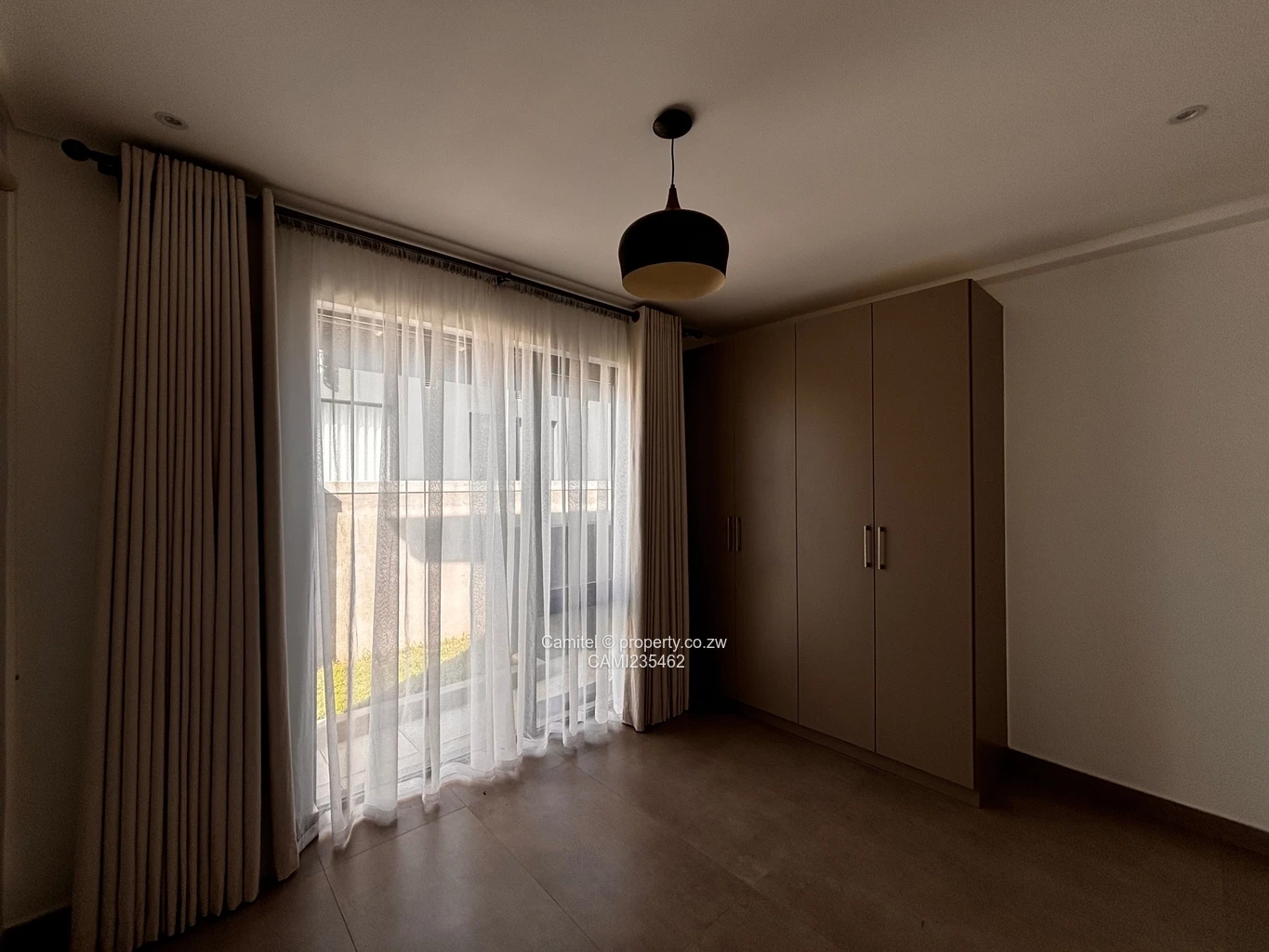 Cozy 4 bedroom gated Townhouse located in Borrowdale. Property comes with main bedroom ensuite, guest bedroom ensuite, shared bathroom, separate toilet, borehole water, back up solar system, solar geysers and 24/7 security, its a lock and go!