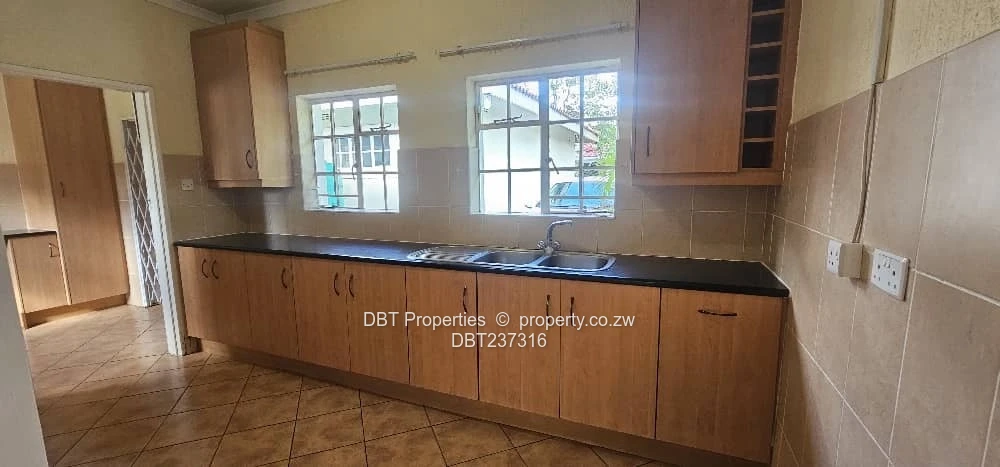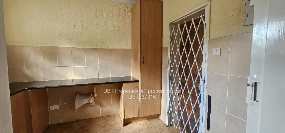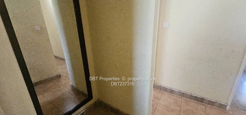 The property offers a good-sized kitchen and an open-plan lounge and dining area that opens onto a private verandah. Two of the bedrooms have direct access to the outdoor area. The flat is fitted with solar power and benefits from borehole water. The complex features an electric gate and 24/7 security, ensuring peace of mind.