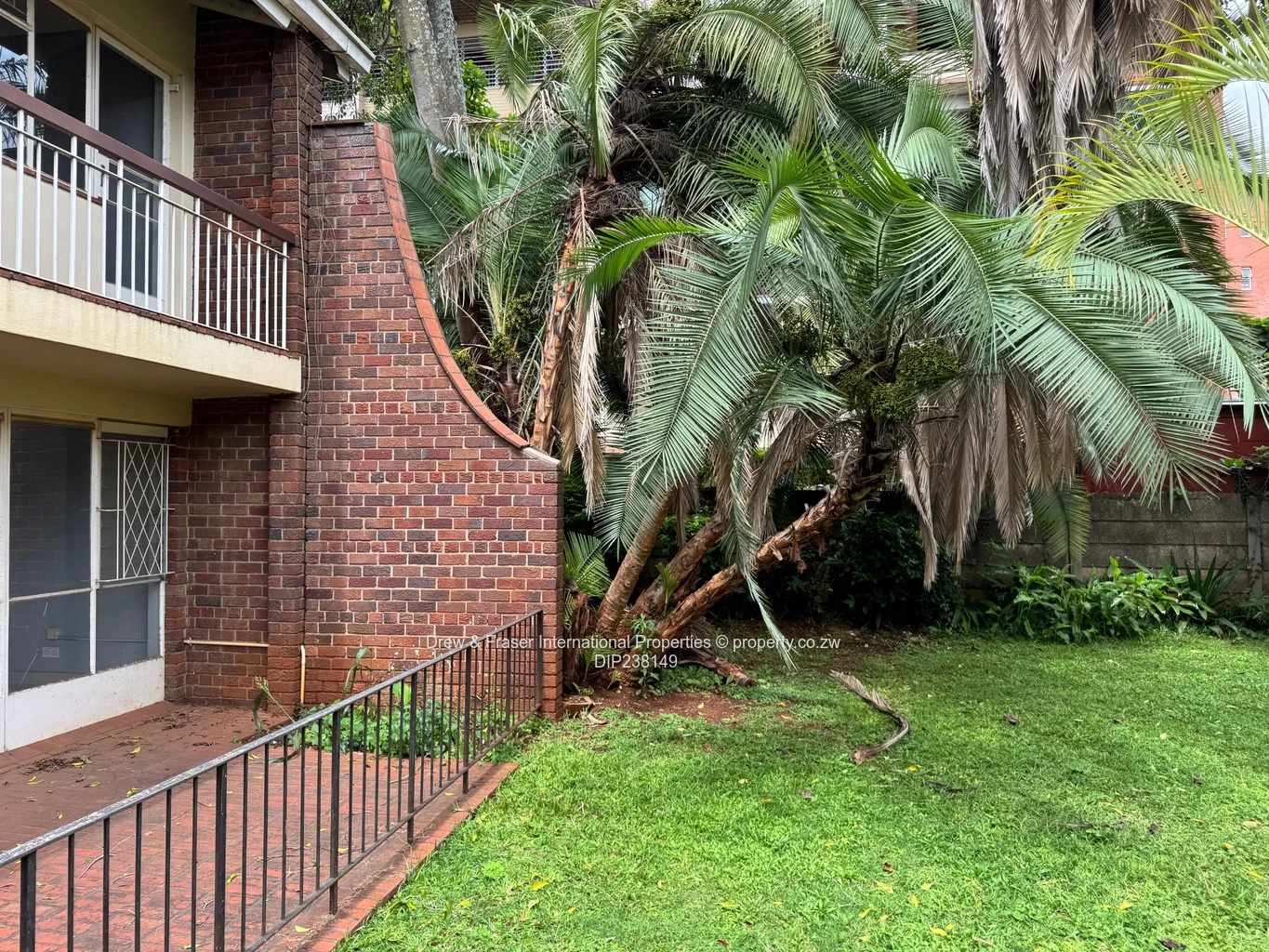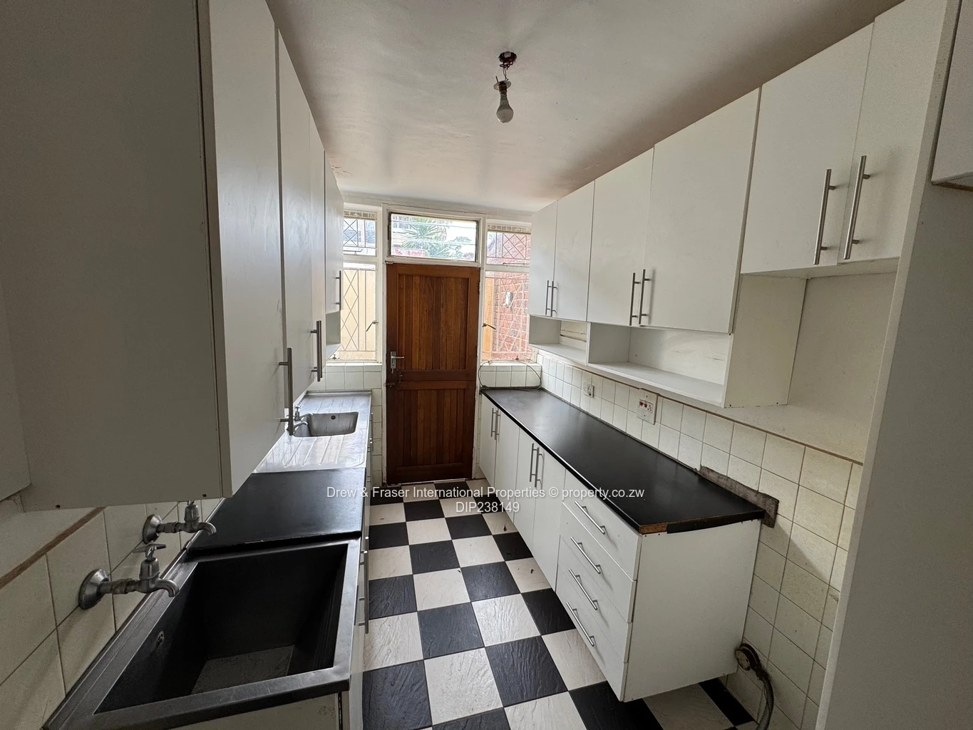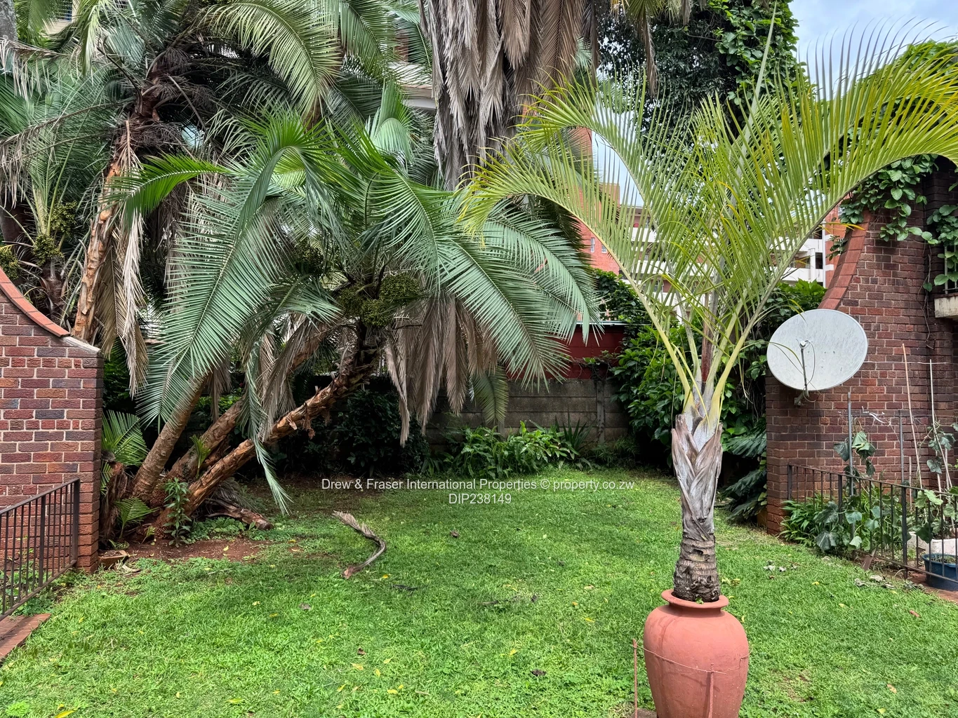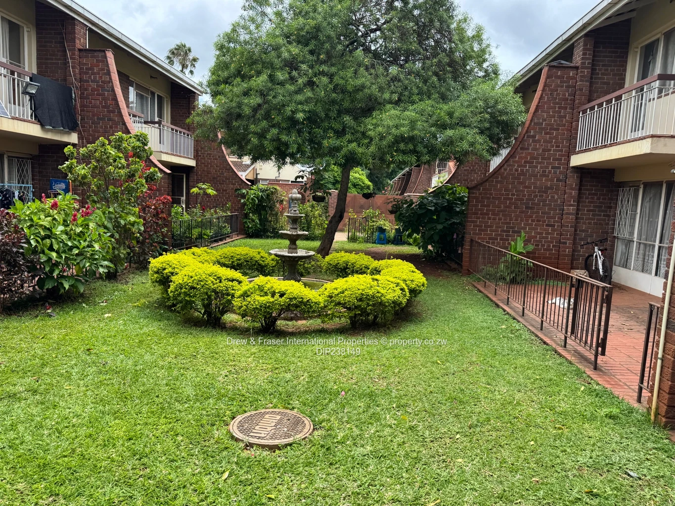 Charming 3-bedroom, 2-bath garden flat in the heart of Avenues, Harare CBD of comfortable living on a secure compound.The spacious open-plan lounge floods with natural light through large windows and sliding doors that open directly onto a beautifully maintained communal garden edged with established palms and manicured lawns — perfect for morning coffee or weekend entertaining. The well-appointed kitchen features distinctive black-and-white checkered flooring, ample white cabinetry and a practical scullery area for laundry and storage.