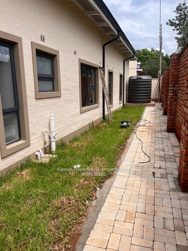 The unit has a small wrap-around garden, 5000l water tank and booster pump.
