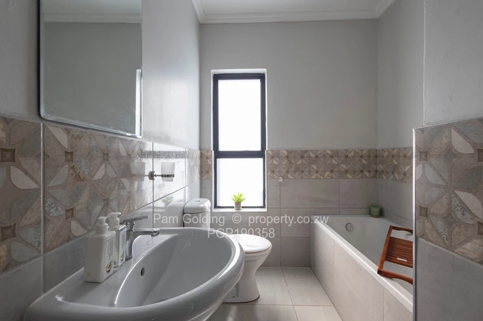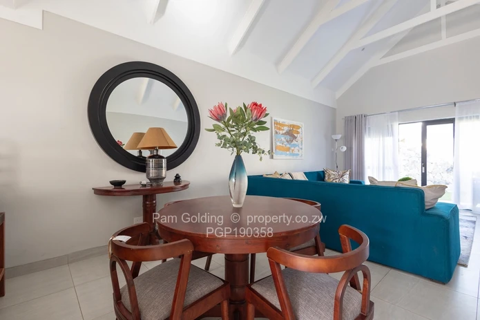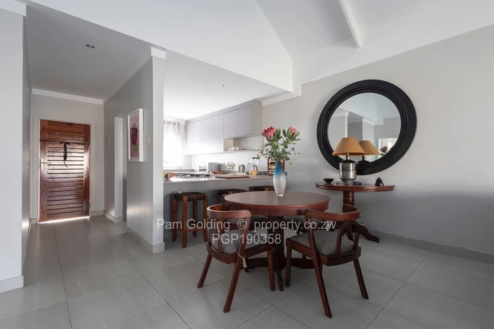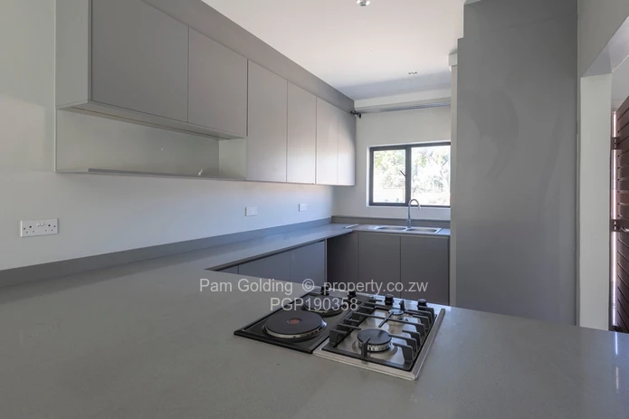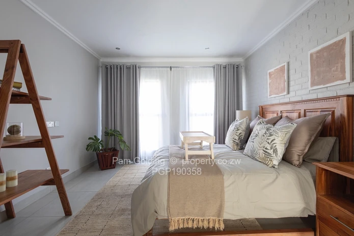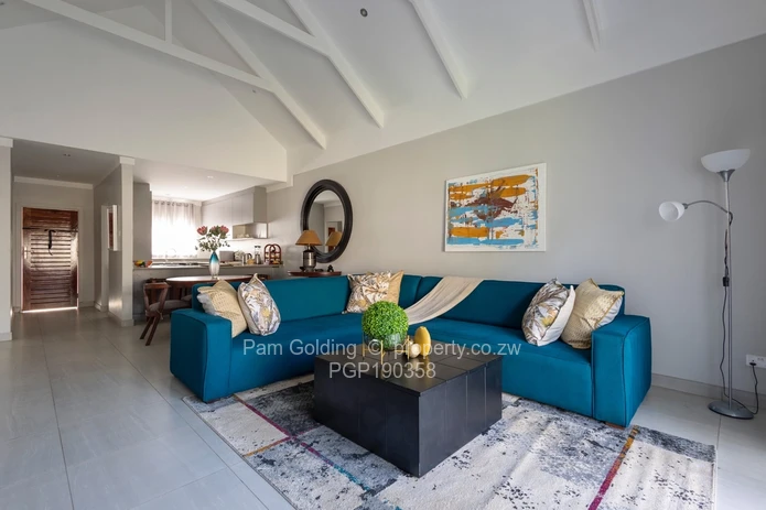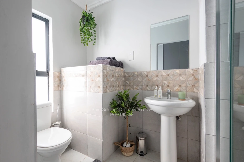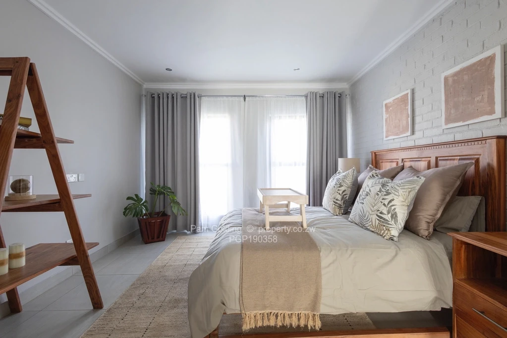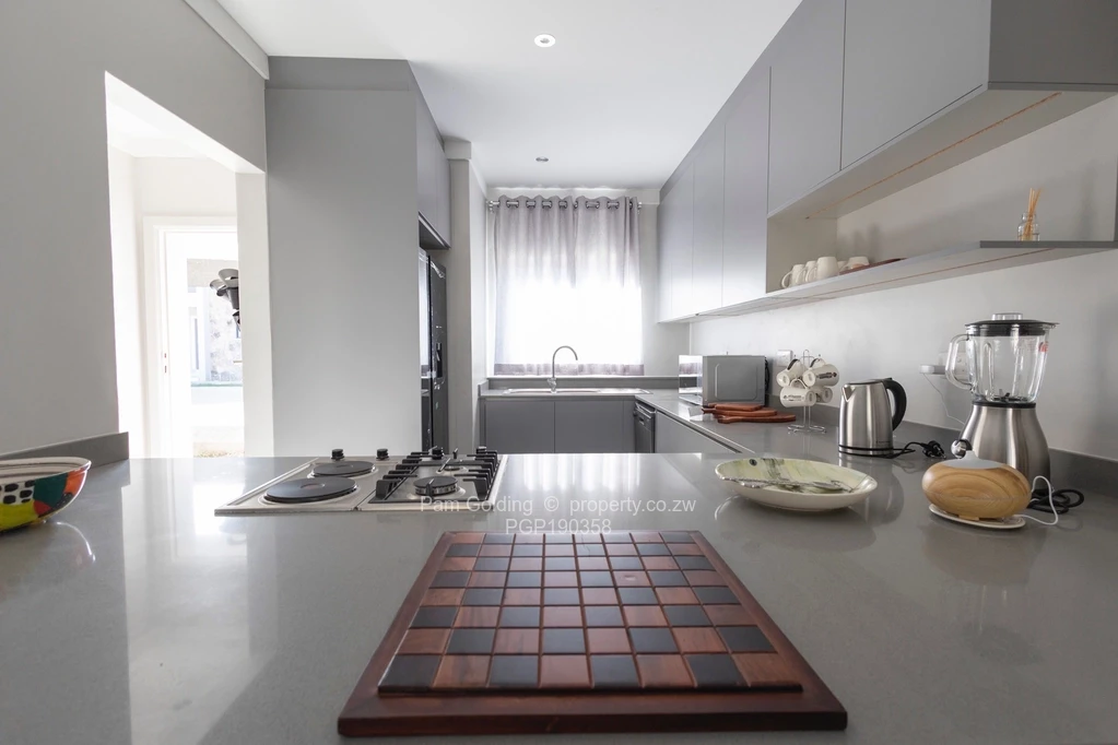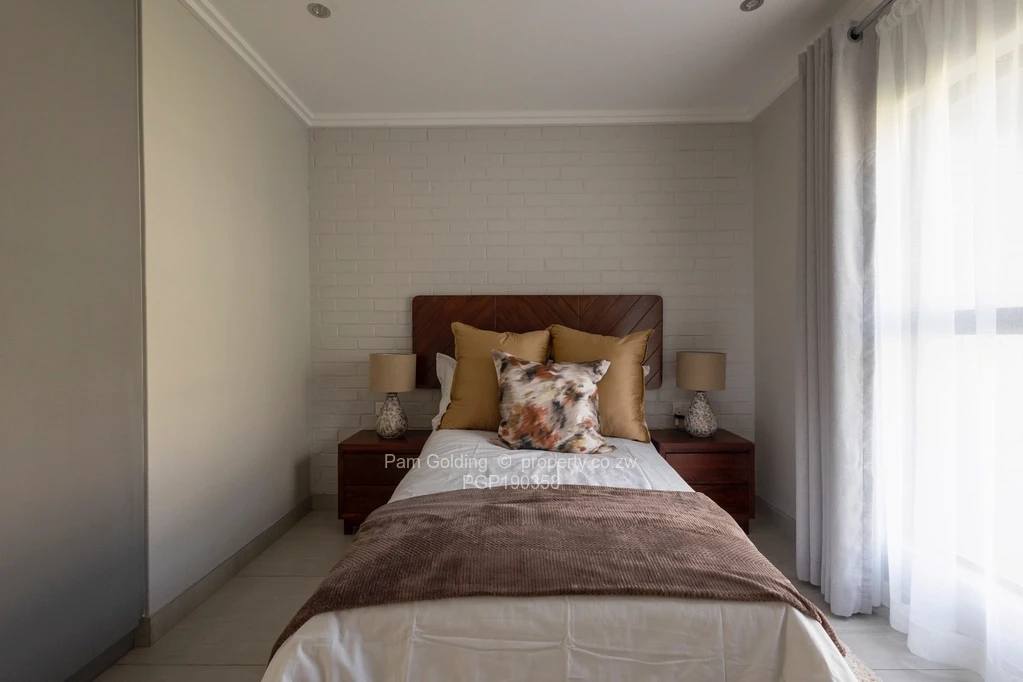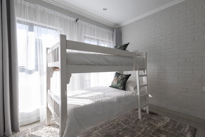 Luxurious 3 bedroom cluster home (unfurnished) available for rent in Meyrick Park area. This stunning home features a modern open plan kitchen, spacious double volume dining area and lounge, complete with large aluminium windows overlooking a well manicured garden. The property boasts 2 bedrooms with a family bathroom, as well as a master bedroom and en suite bathroom. Residents can enjoy peace of mind with 24-hour security, backup power, a communal pool, and access to a borehole for constant water supply.