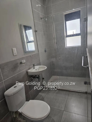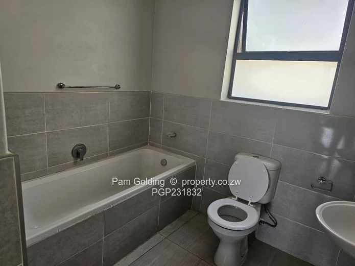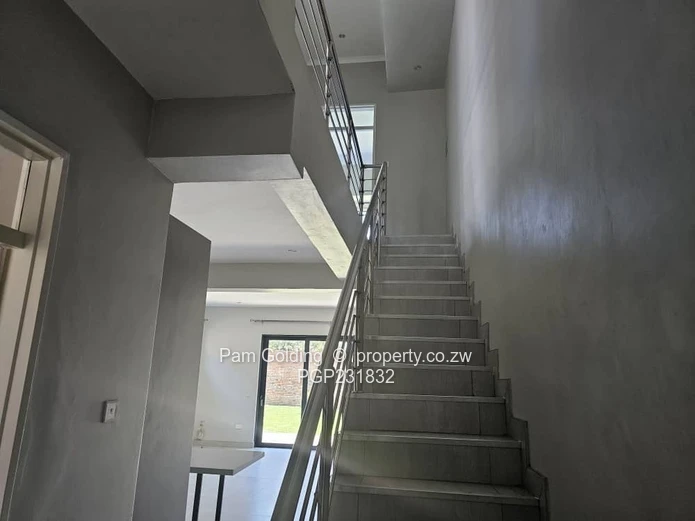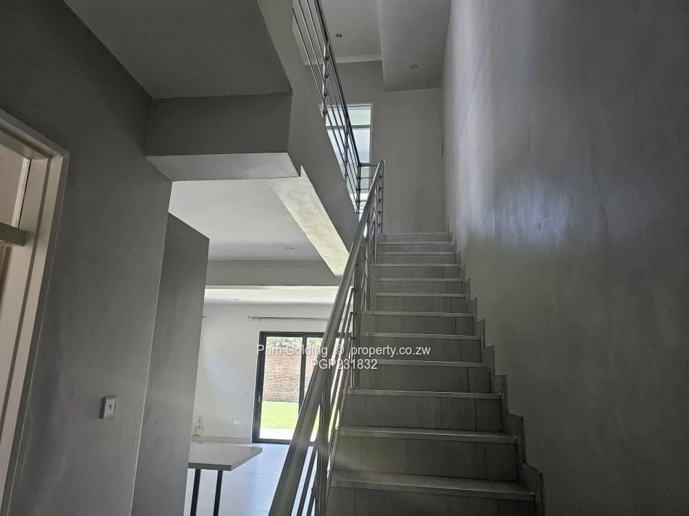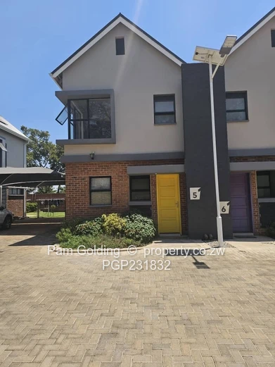 3 bedroom duplex townhouse in a lovely complex for rent in highlands on Glenara close to Samora Machel. This all inclusive price gives security , borehole , private parking , a back garden and complex swimming pool.