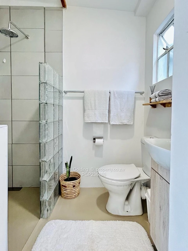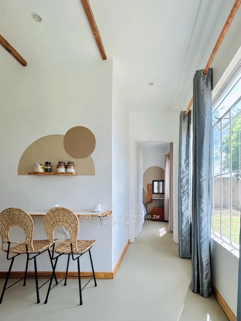 This fully equipped bedsitter in Pamona is the perfect place for a single person starting out or a couple. With everything you need from kitchen appliances and furniture. This Rental includes a cleaning and laundry service twice a week aswell as wifi. There is a solar back up, as well as solar geyser for no electricity worries. Private garden space secluded from the main house.