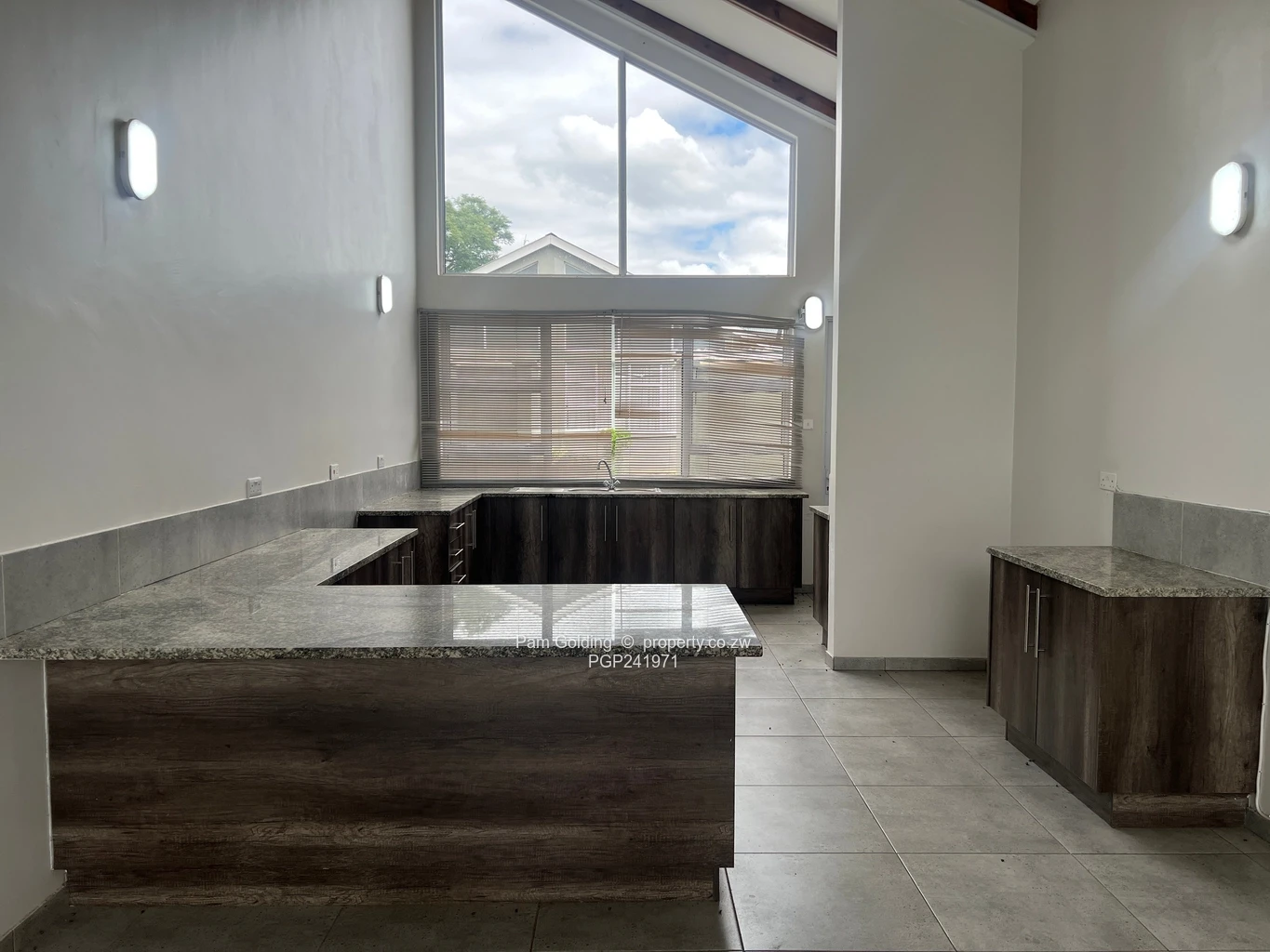 Located in the sought after area of Chisipite is this beautifully townhouse in a complex of 4 units only. The property features a modern fitted kitchen, three spacious bedrooms, three bathrooms and a guests toilet and bath, a study, a large airy lounge with raised ceilings opening up to a landscaped garden and a dining room all on porcelain tiles.