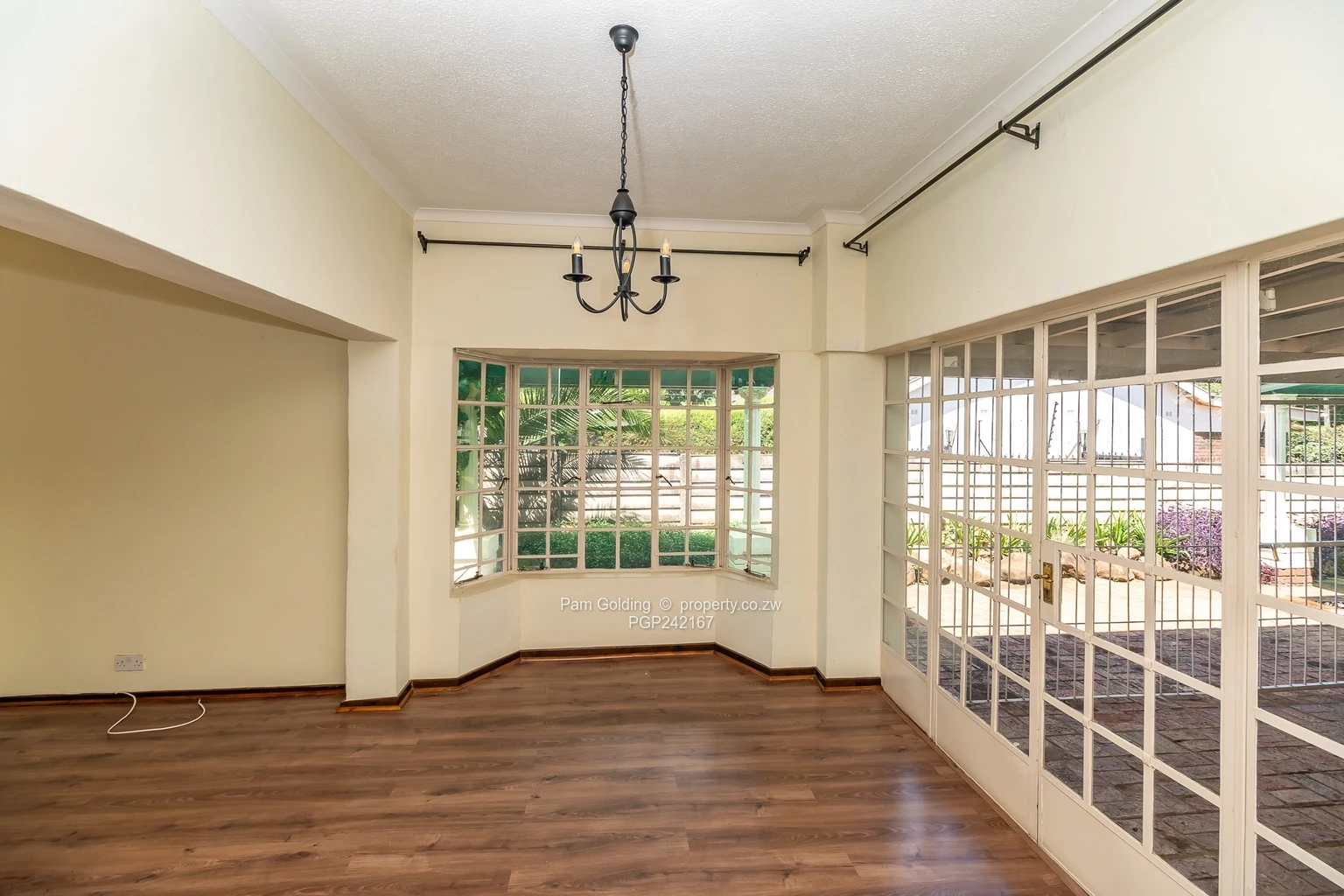 The property boasts a large private garden, reliable borehole water supply with tank and pump, and good ZESA. Security features include an electric gate, electric fencing, and external alarm system.