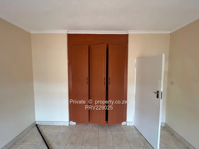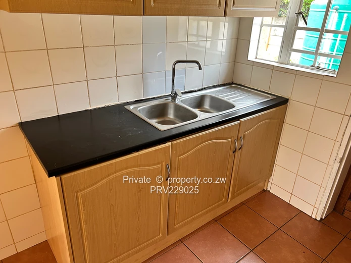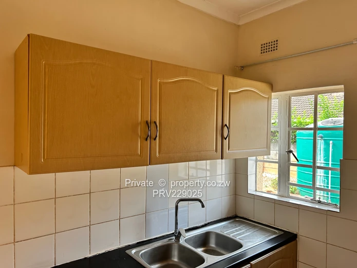 Two bedroomed apartment with lounge, kitchen, combined bath and toilet, verandah and enclosed backyard. Borehole water available and dedicated 5000L tank for the flat. Available For 1 November 2025. Viewing strictly by appointment.