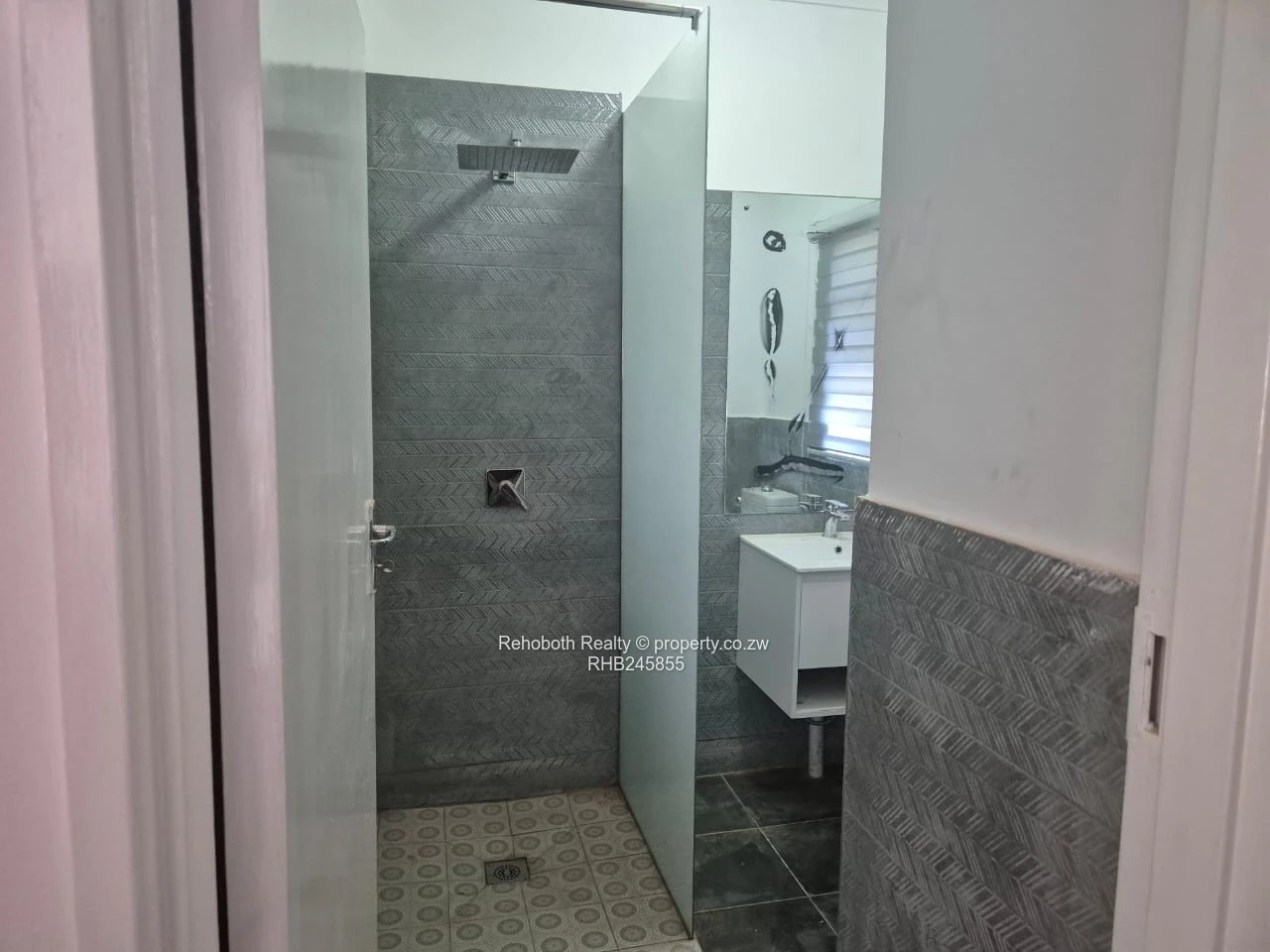 Charming 2-bedroom garden flat in Marlborough, Harare West. The property has back-up power and solar water heaters on the roof for added efficiency. BICs, the bathroom has been smartly updated with a walk-in shower, grey tiled feature wall and contemporary vanity. Both bedrooms are comfortable; the main bedroom features built-in wardrobes and polished parquet flooring. Well-maintained, secure and quietly positioned in Marlborough, this garden flat offers easy access to local amenities and comfortable living with outdoor space. Contact us to arrange a viewing and make this tidy, move-in-ready flat your next home.