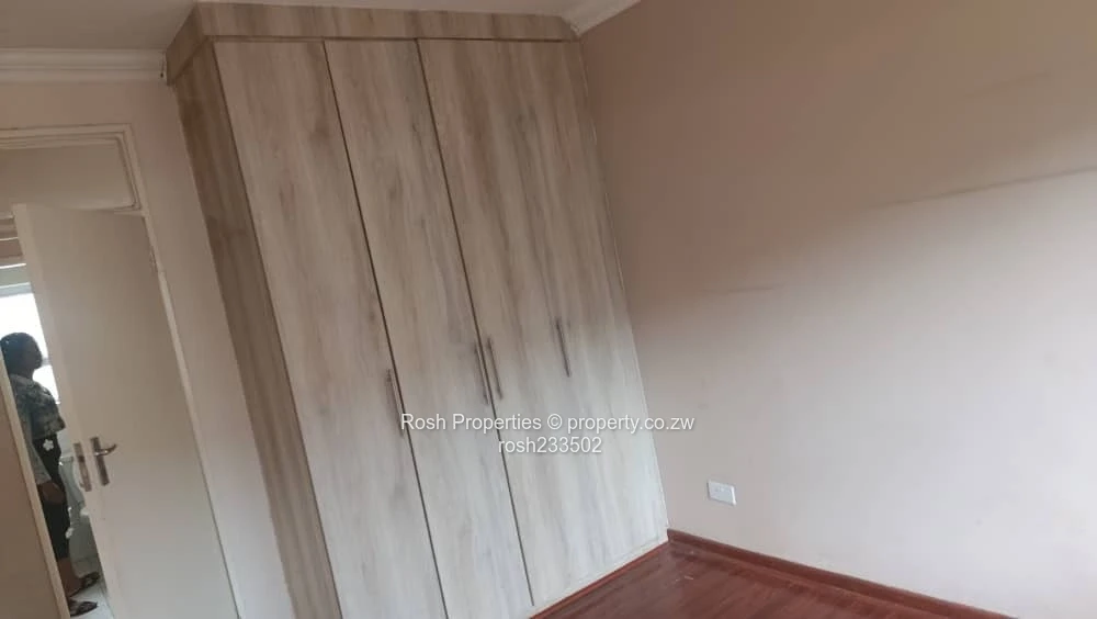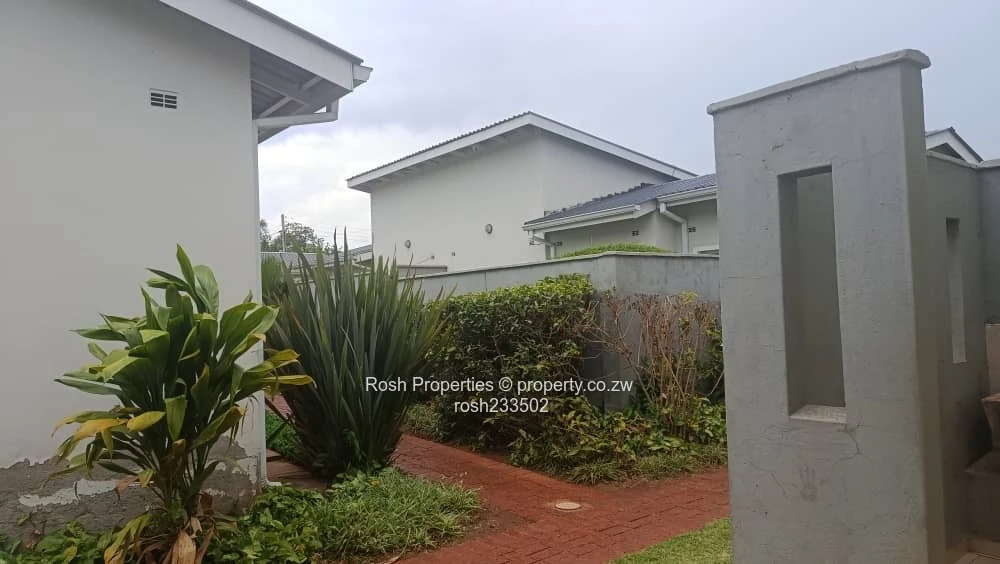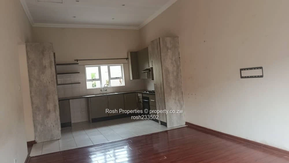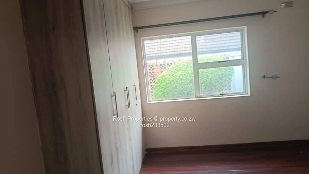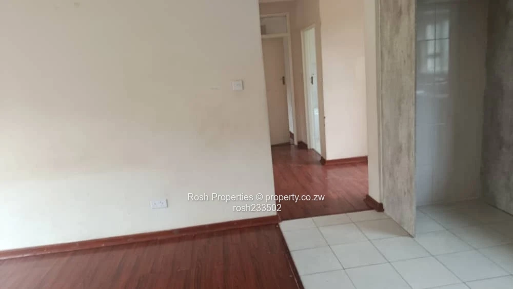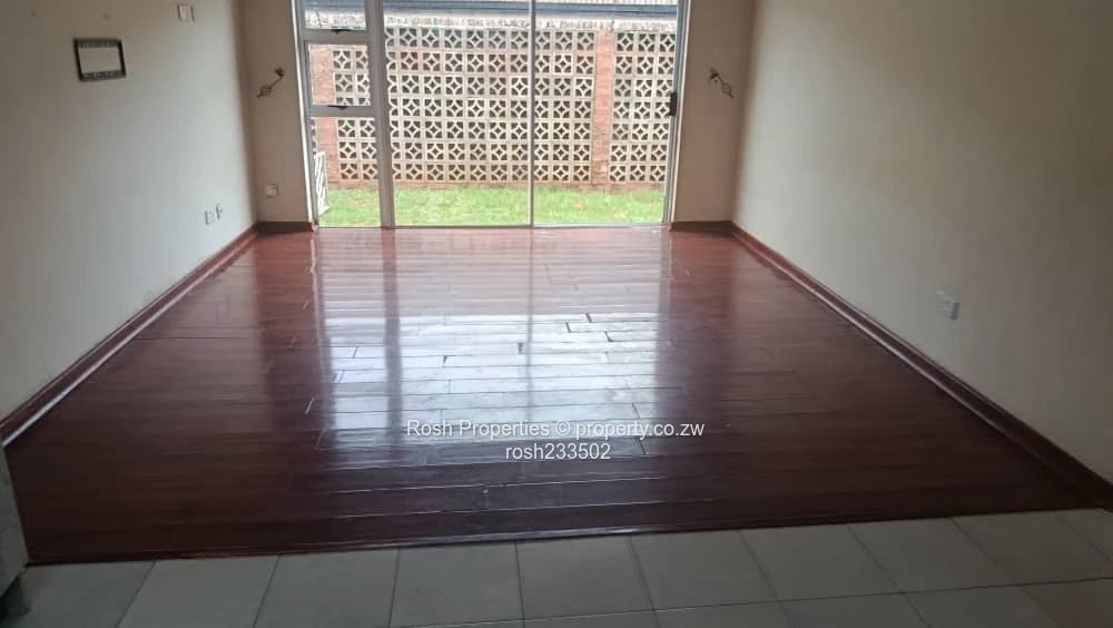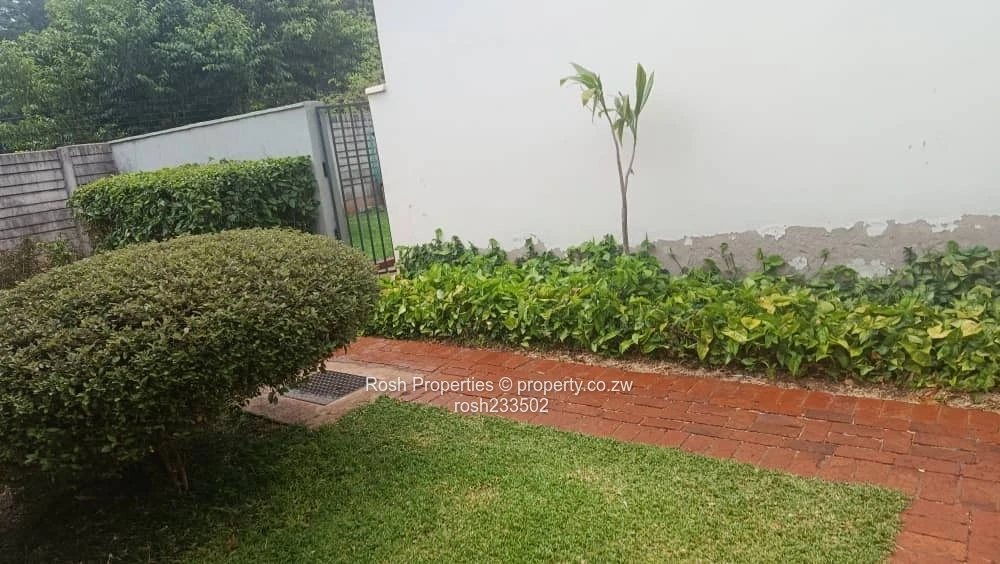 Charming 2-bedroom, 2-bathroom garden flat in Greendale North, Harare North — perfect for a professional couple or small family. As seen in the photos, the flat opens into an airy open-plan lounge and dining area with polished wooden flooring and sliding glass doors that lead directly to a private, low-maintenance lawn and neatly trimmed hedges (see images of the lawn and paved red-brick pathway). The modern fitted kitchen features ample cupboards, tiled flooring, a built-in oven and hob plus generous counter space for meal prep. Both bedrooms are carpet-free with quality timber floors and built-in wardrobes shown in the pictures; the two bathrooms include a tiled shower cubicle and a separate WC/vanity for convenience. Outside you’ll find a secure walled boundary, pedestrian gate, satellite/DStv connection visible on the wall, and established shrubs that create a pleasant, private courtyard. Positioned on a stand of 280 m² with a building footprint of 300 m², this garden flat offers comfortable, move-in ready living in a sought-after Harare North location close to schools, shopping and major routes. Contact us to arrange a viewing.