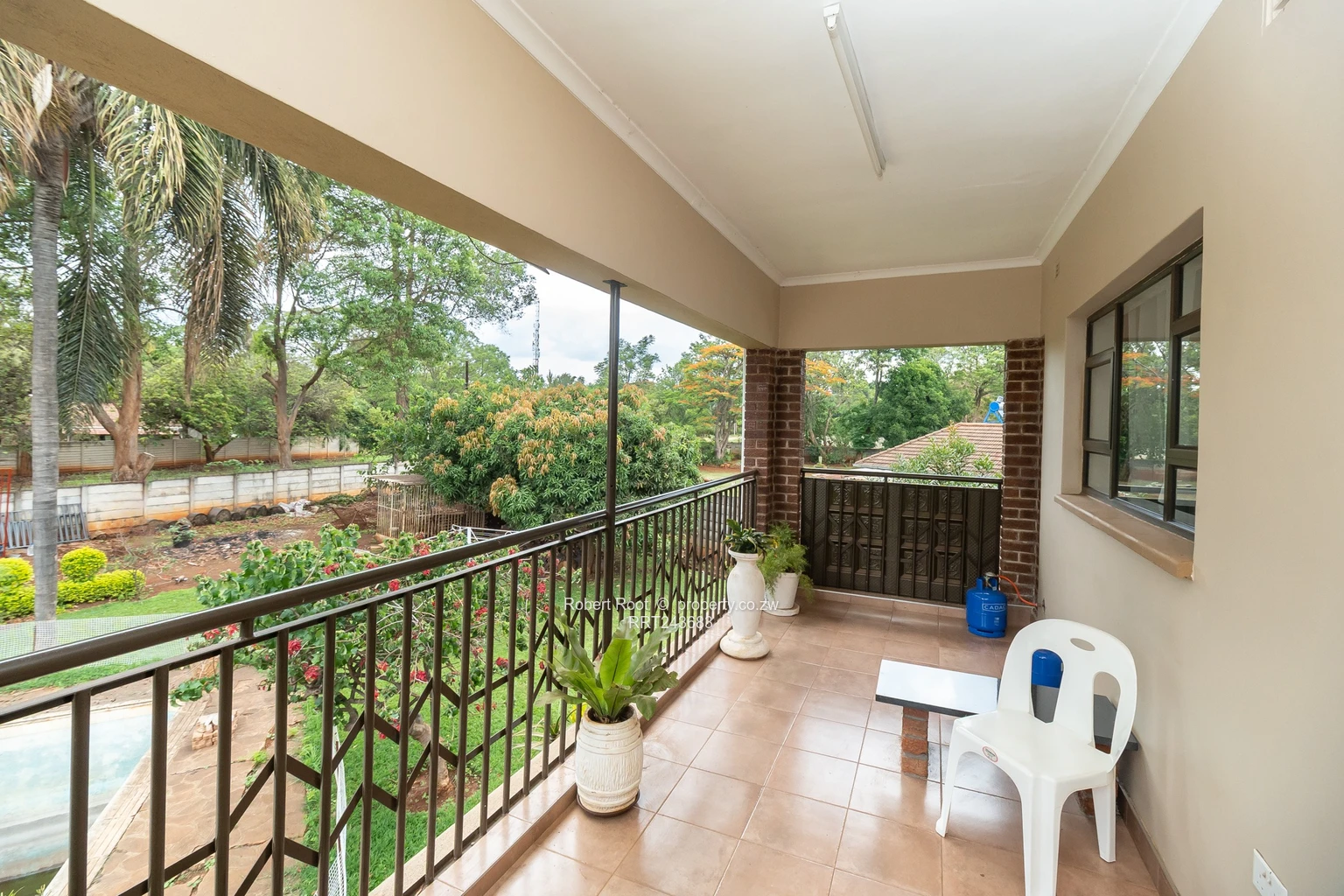 Outdoors, enjoy a beautifully landscaped garden complete with a tranquil pond and electric gate for added security. Additionally, a borehole, water tanks, and solar geysers underline the property's eco-friendly features.