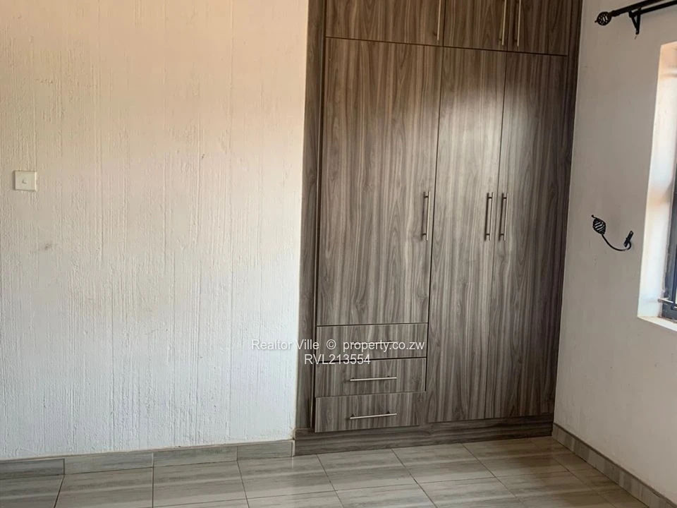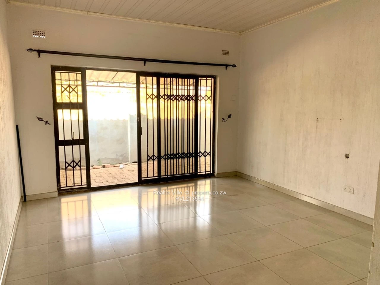Bright and secure 2-bedroom garden flat to rent in Tynwald, Harare West. Neat 80 m² living space on a compact 100 m² stand — low-maintenance living with everything in place. The flat features a spacious tiled open-plan lounge that opens through a sliding, security-gated door onto a private paved yard and small patio, perfect for morning coffee. The modern kitchenette is fitted with ample overhead and under-counter cupboards and a granite-look countertop. Both bedrooms offer large built-in wardrobes and tiled floors, while the bathroom is fully tiled and includes a bathtub.