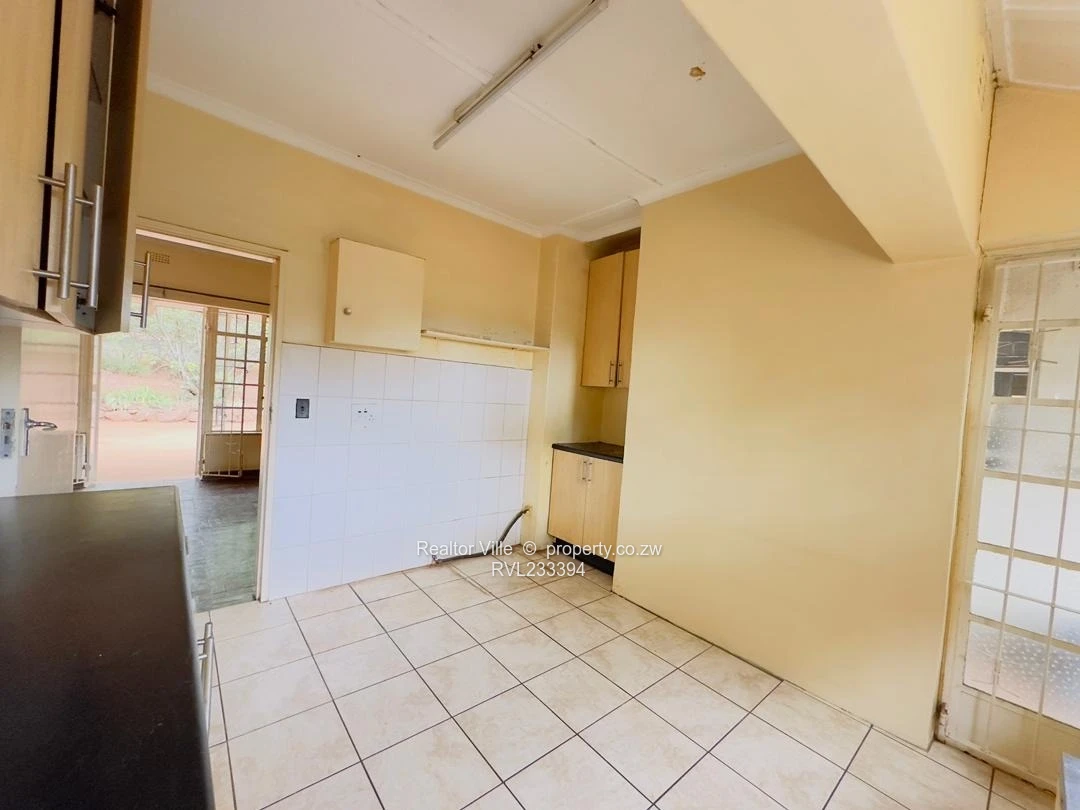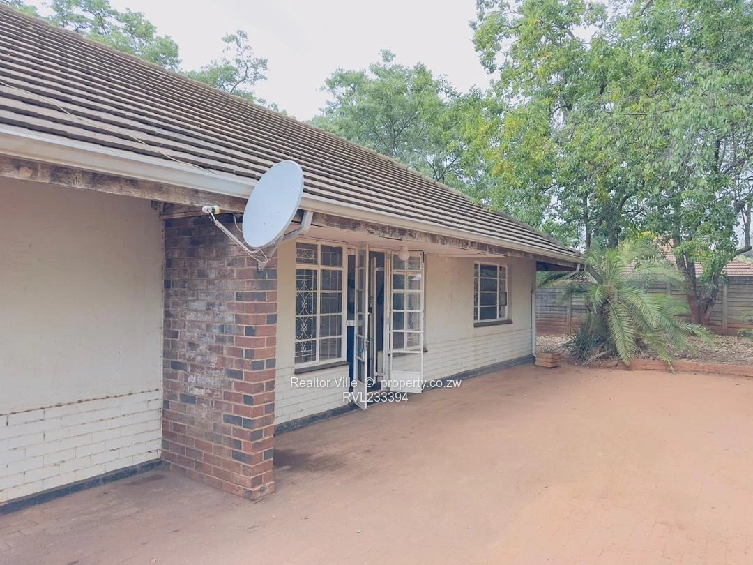 Beautiful garden flat to rent in Greendale, Harare East — a quiet, leafy setting on a generous 4 000 m² stand. This neat 100 m² flat offers 2 comfortable bedrooms with built-in cupboards, 1 full bathroom with a bath, bright lounge with original parquet floors and secure French doors opening to a large paved courtyard. The kitchen is tiled and fitted with light-wood cabinetry and counter space, and there is reliable borehole water supply for peace of mind. The exterior shows mature shade trees and palms, ample parking on the paved yard, security bars and a gated entrance, plus a satellite dish already installed. Ideal for a small family or professionals seeking a practical, well-located rental with outdoor space. Viewings by appointment — contact us to arrange a visit and see this Greendale gem for yourself.