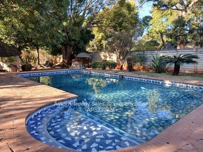 Property comes equipped with a good borehole full solar back up with solar geysers.. Water tanks for back up water storage. Fully walled with electric date and security lighting. Double staff quarters, outside kitchen for anything extra. With a generously sized courtyard, tennis court, and a veranda, this delightful home is perfect for a family home.