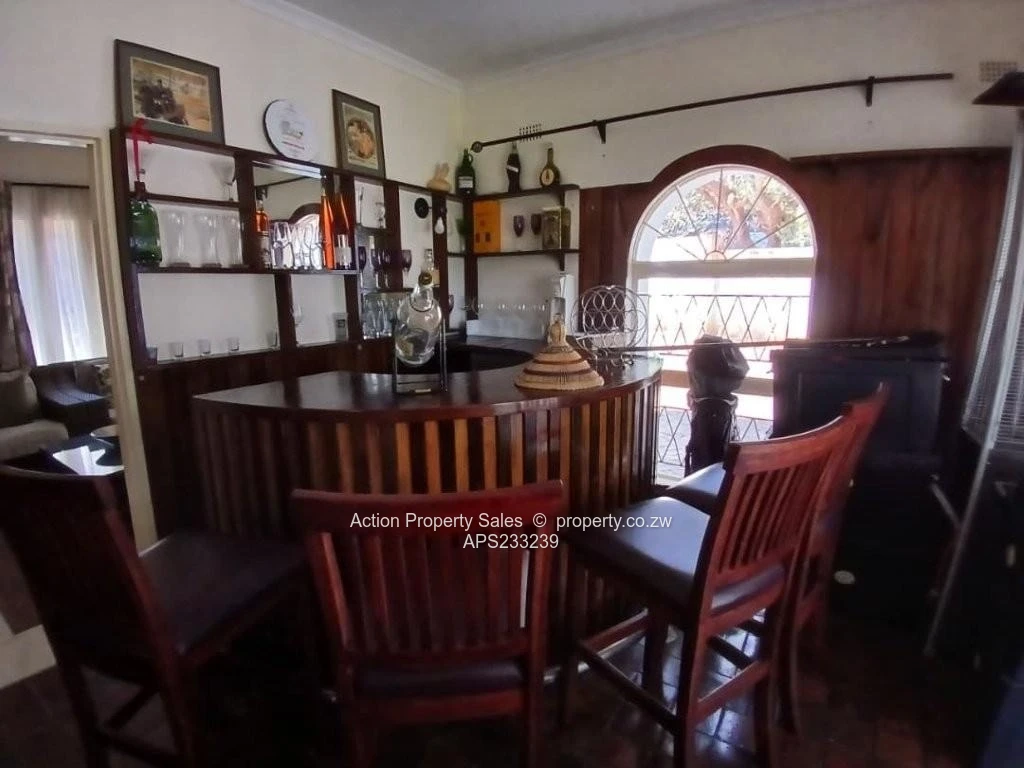 Neat family home comprising 4 tiled bedrooms, mes with built in cupboards, small extension with big glass windows makes for a sit down area and lots of natural light, Family bath and toilet. Large formal lounge opening onto the front veranda, Lounge steps down into the fitted bar that is interleading with another smaller sit down lounge with its own fireplace. Separate dining room connected to the fitted kitchen which comes equipped with a new fitted stove and very good cupboard space.
