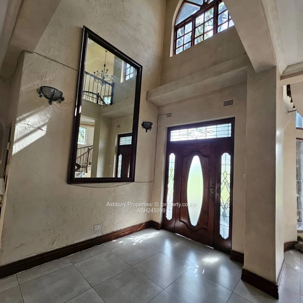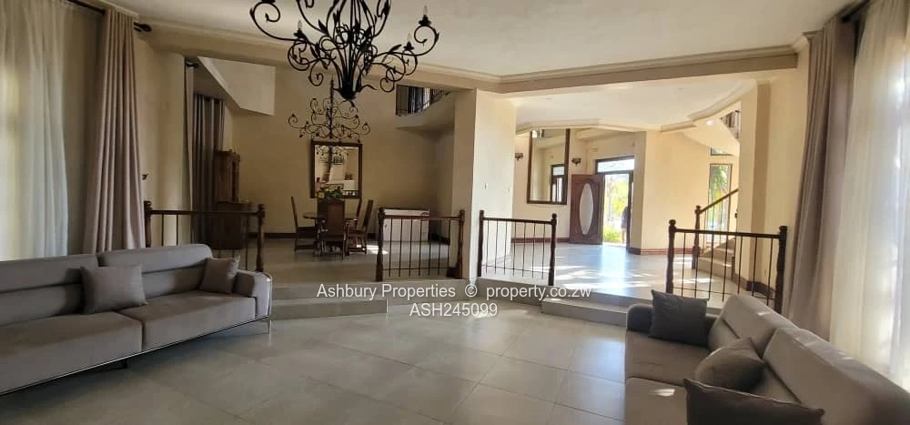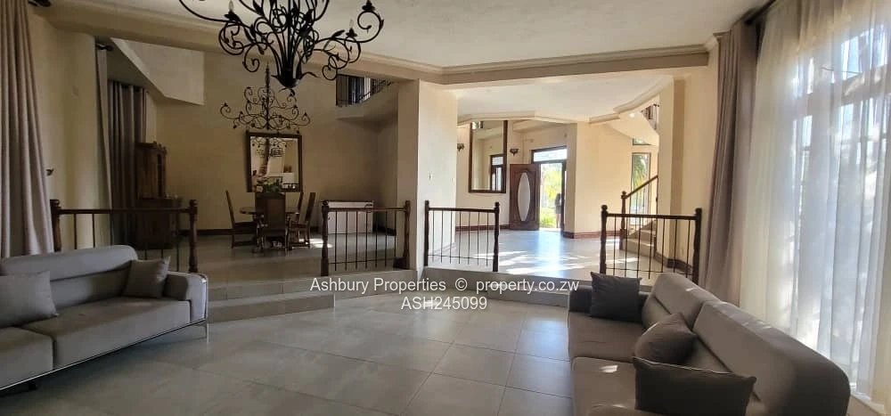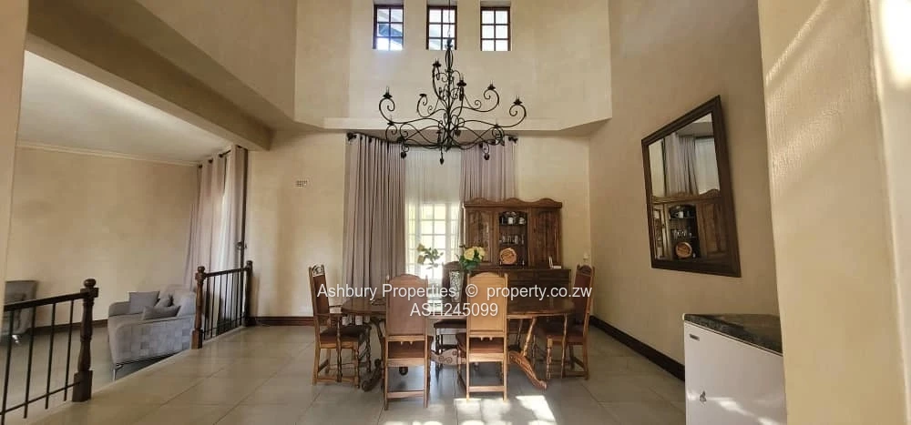 Located in one of Harare's most prestigious gated estates. It offers a grand entrance hallway with a spiral staircase, open plan lounge, dining, fitted kitchen, second lounge and guest loo.