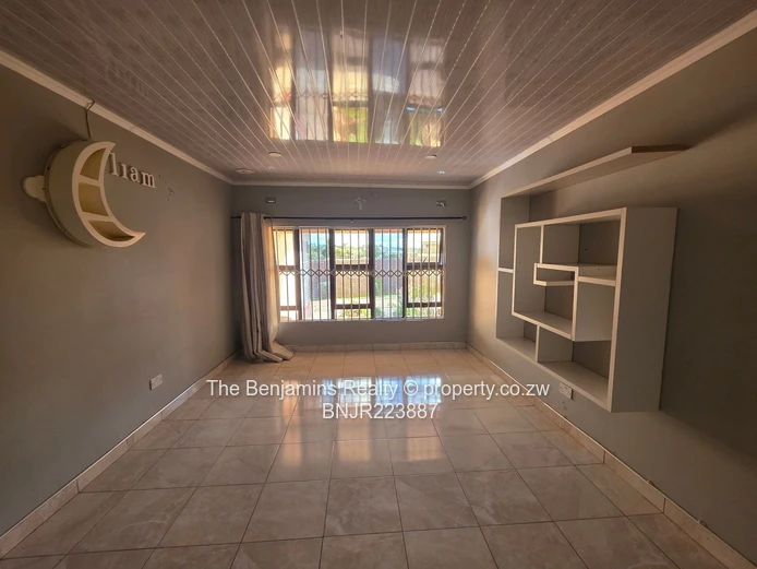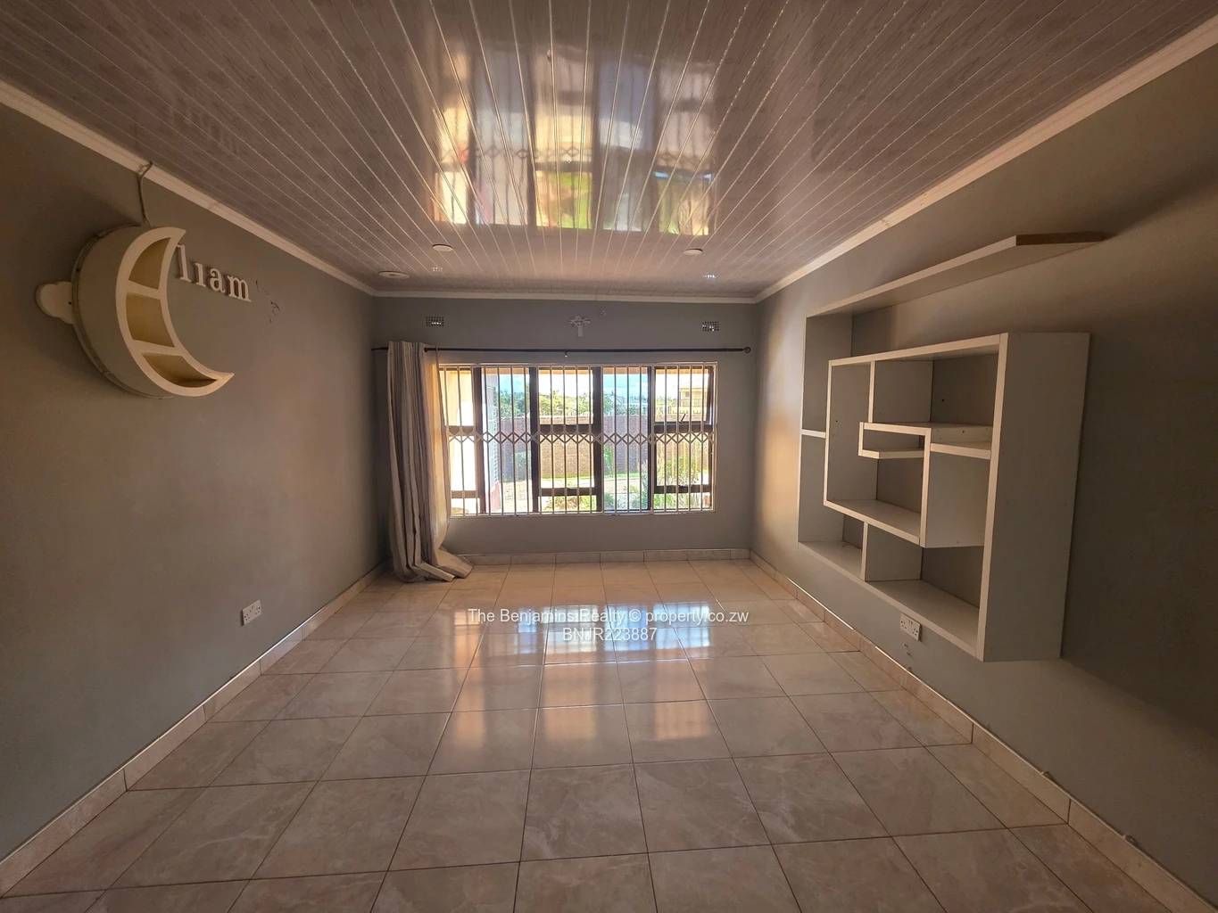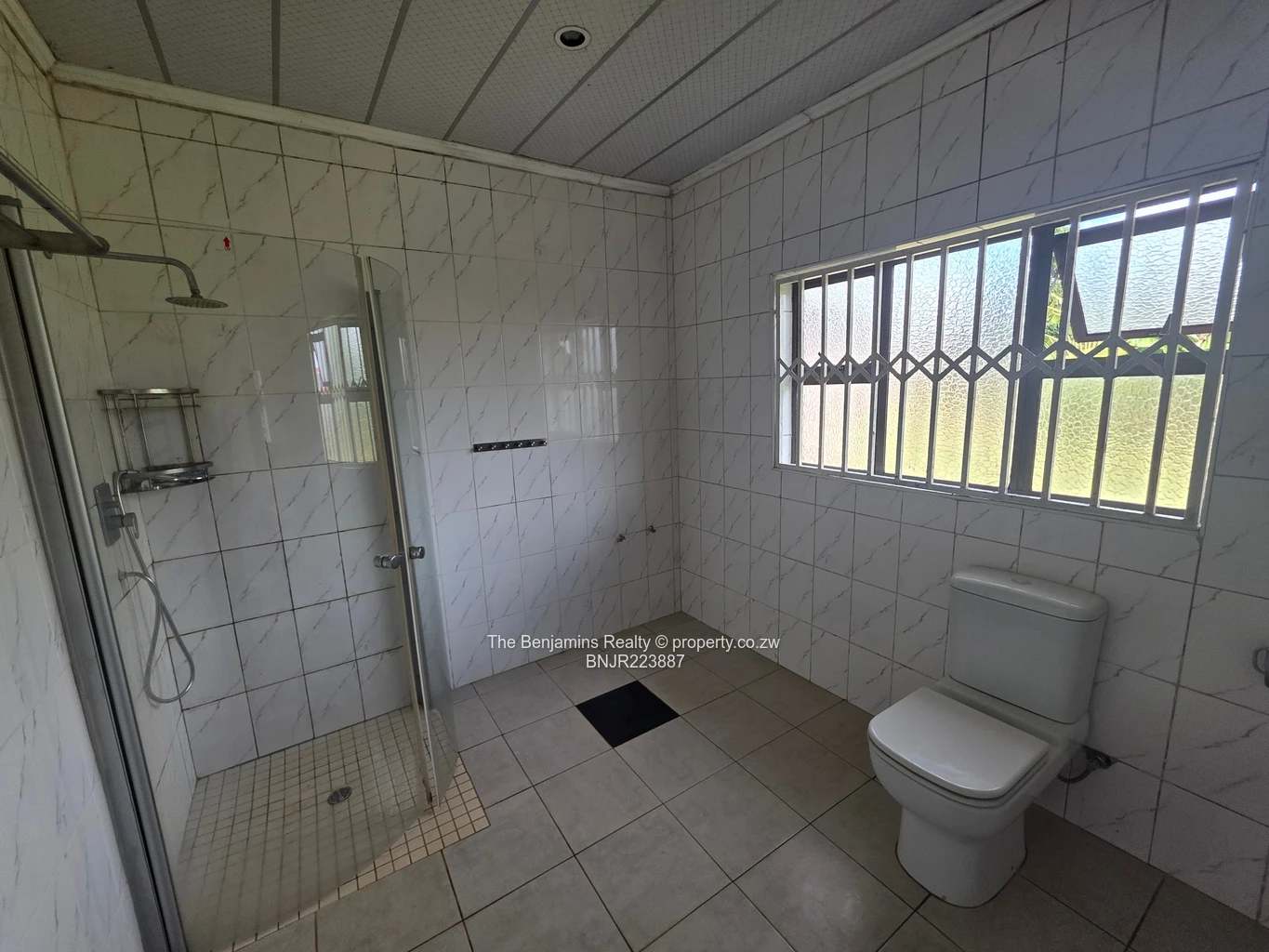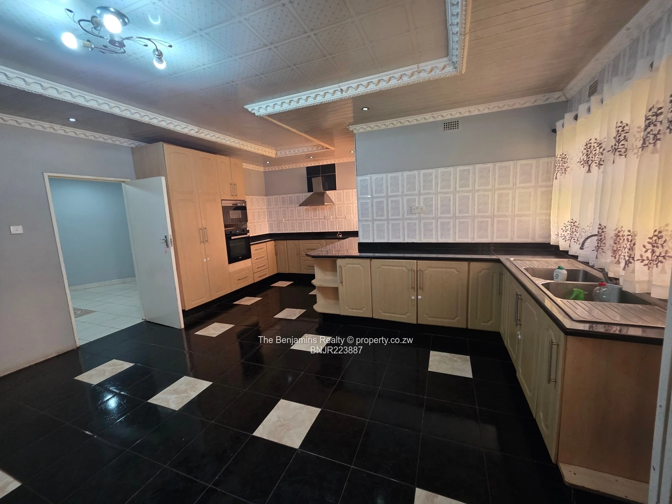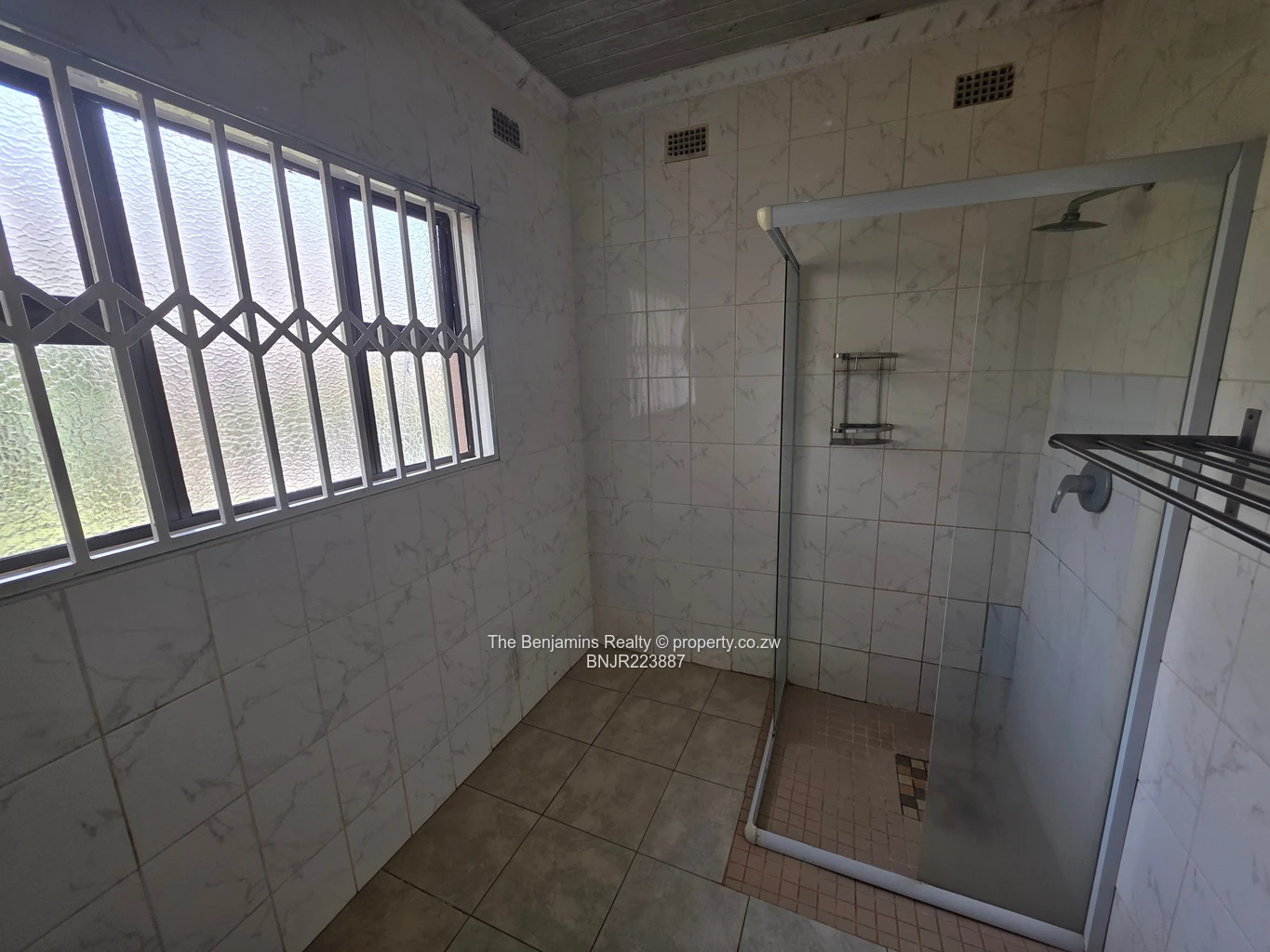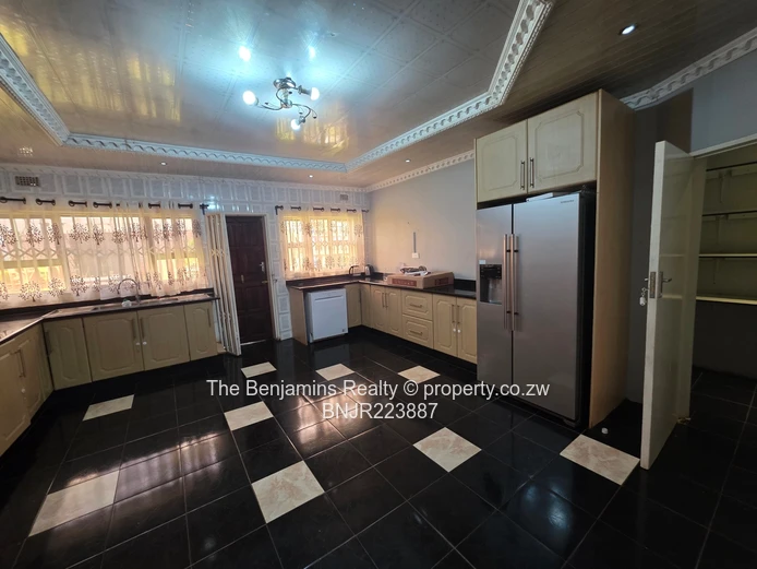 Very lovely home on the boundary of The Grange and Mandara. Perfect area close to Chisipite School and St Johns School – Chisipite Shopping center. A safe secure home. UN complaint burglar bars throughout and all verandas have security bars, walled with spikes on top of all walls, electric gate. House has five bedroom. The main bedroom has a dressing room, en suite bathroom and its own caged veranda. Three well sized bedrooms share the family bathroom. The fifth bedroom has an en suite. Study Kitchen will be a delight to cook in. The Fridge and washing machine can remain. Pantry. Seperate dining room. Two very well sized lounges. The one lounge has a fire place and has French doors opening onto a caged veranda. Double lock up garage. Laundry. Very pretty garden water by borehole. Inverter. Please note no staff quarters. Available immediately Gardener to stay, however will not stay on the property.