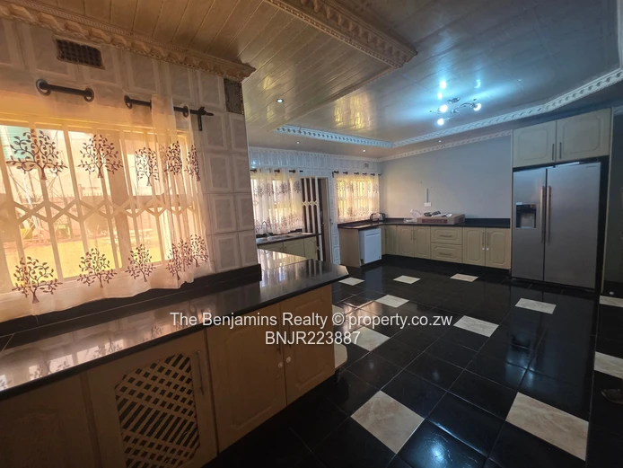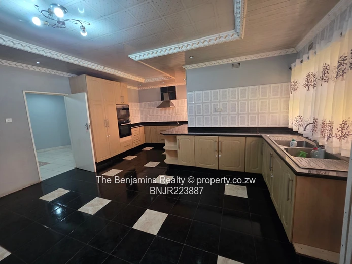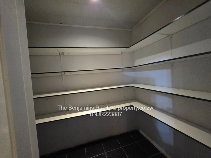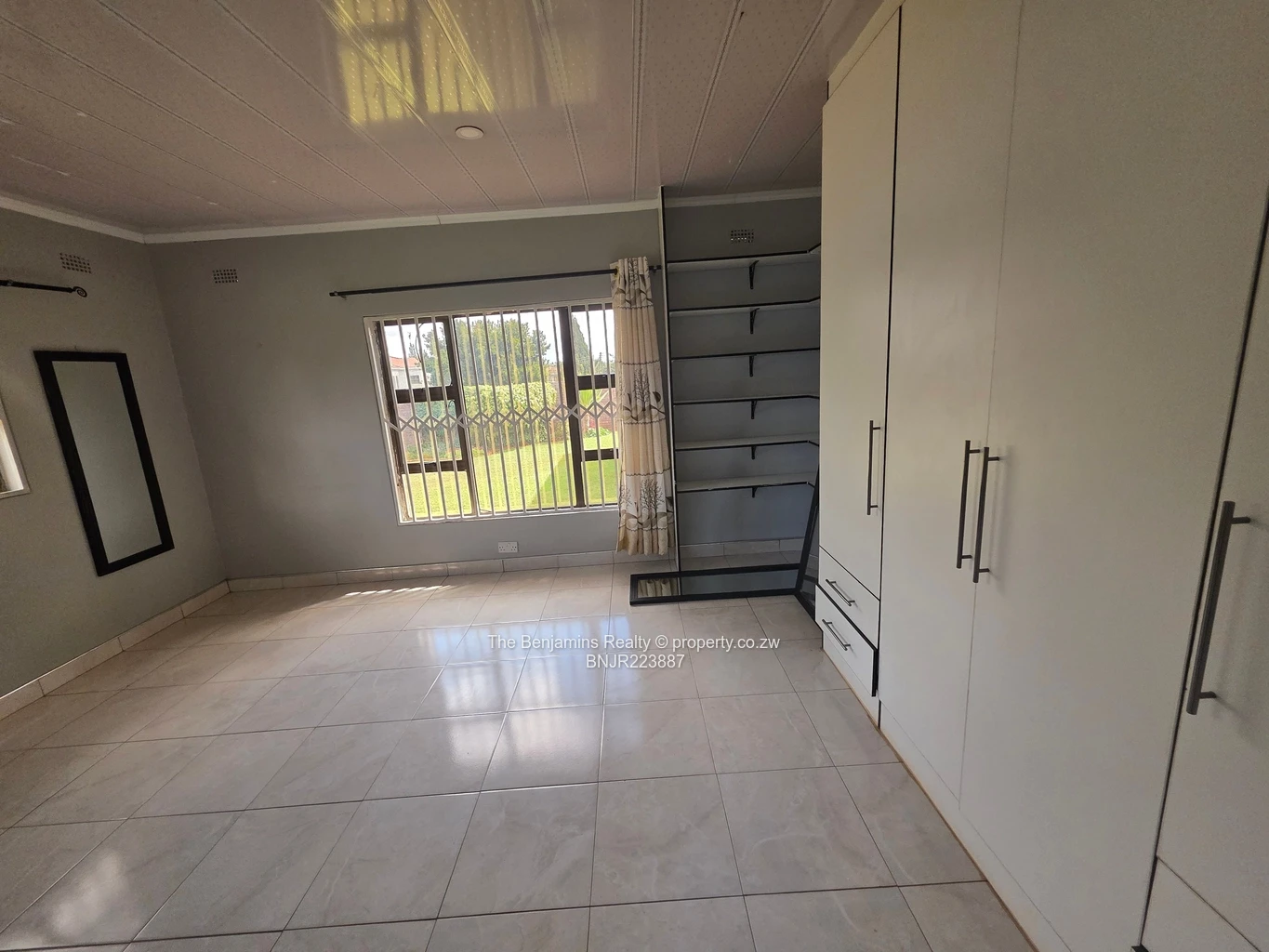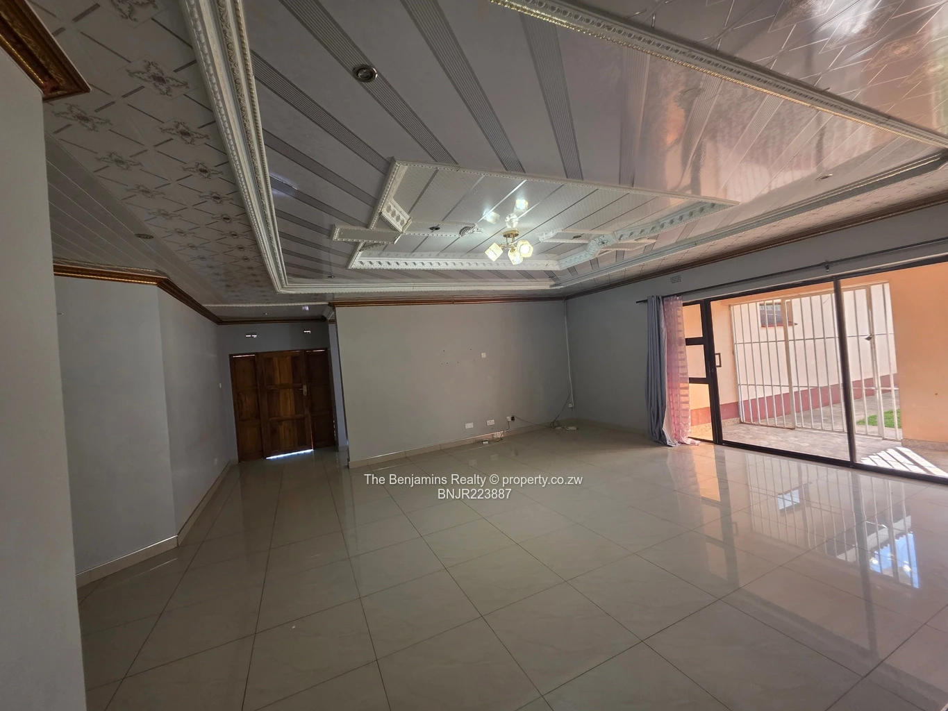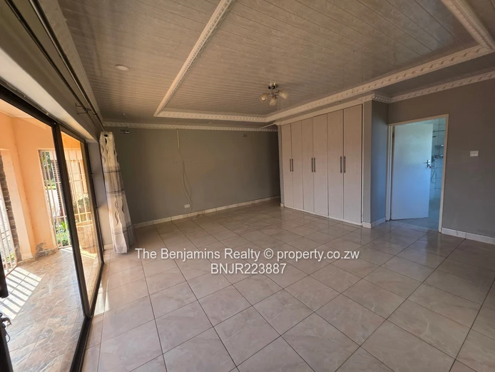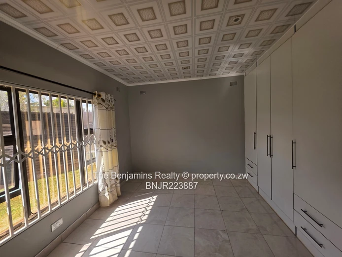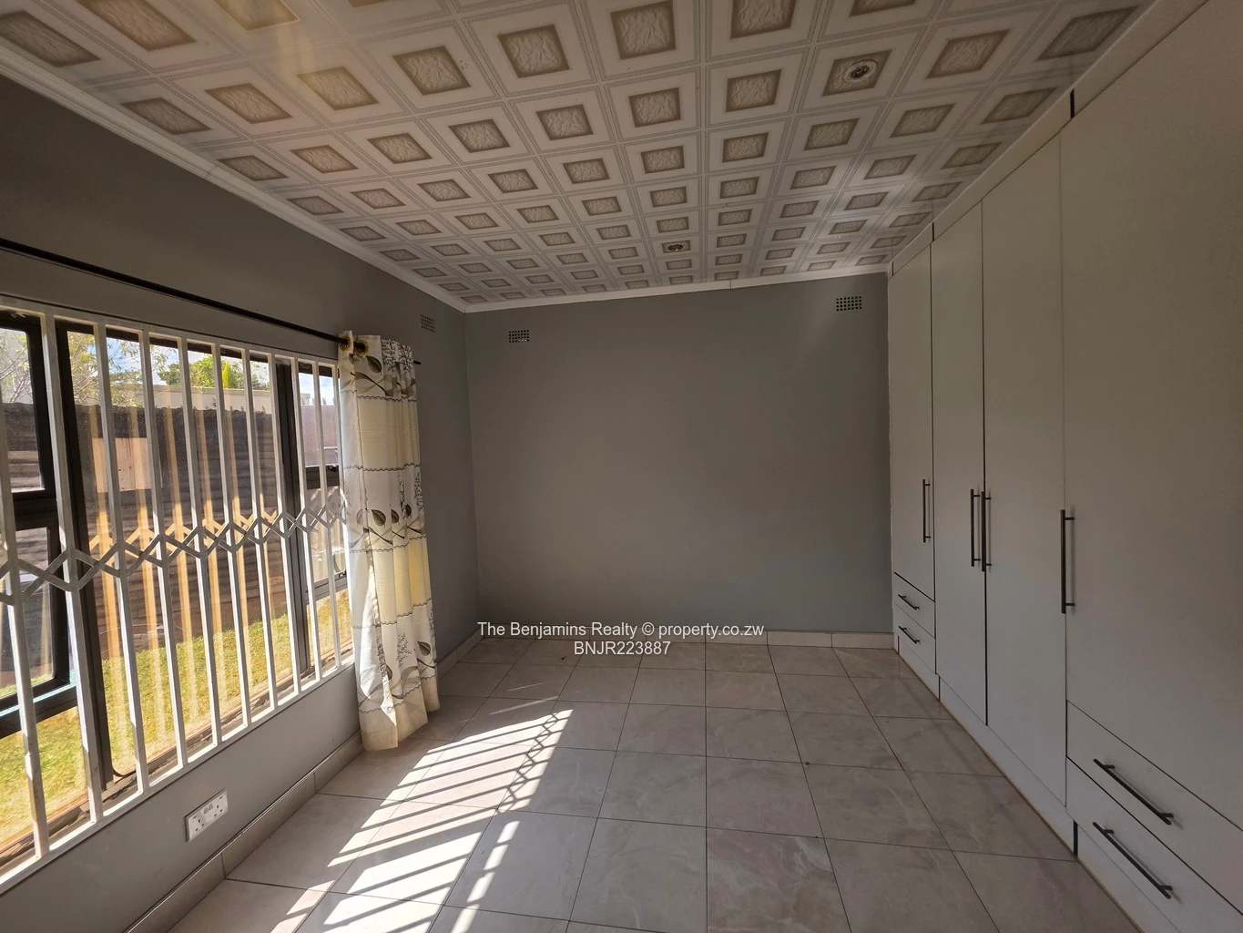 Very lovely home on the boundary of The Grange and Mandara. Perfect area close to Chisipite School and St Johns School – Chisipite Shopping center. A safe secure home. UN complaint burglar bars throughout and all verandas have security bars, walled with spikes on top of all walls, electric gate. House has five bedroom. The main bedroom has a dressing room, en suite bathroom and its own caged veranda. Three well sized bedrooms share the family bathroom. The fifth bedroom has an en suite. Study Kitchen will be a delight to cook in. The Fridge and washing machine can remain. Pantry. Seperate dining room. Two very well sized lounges. The one lounge has a fire place and has French doors opening onto a caged veranda. Double lock up garage. Laundry. Very pretty garden water by borehole. Inverter. Please note no staff quarters. Available immediately Gardener to stay, however will not stay on the property.