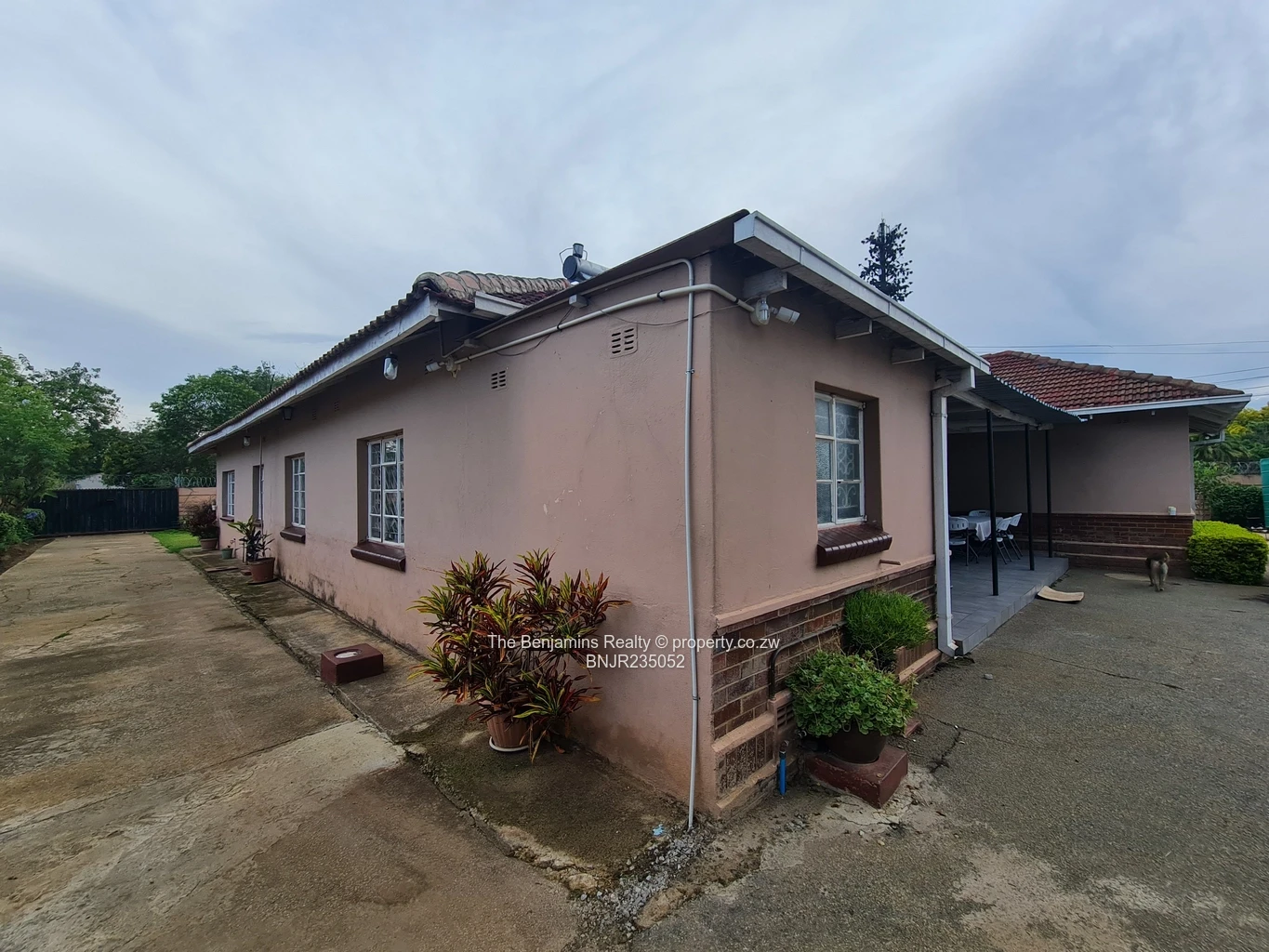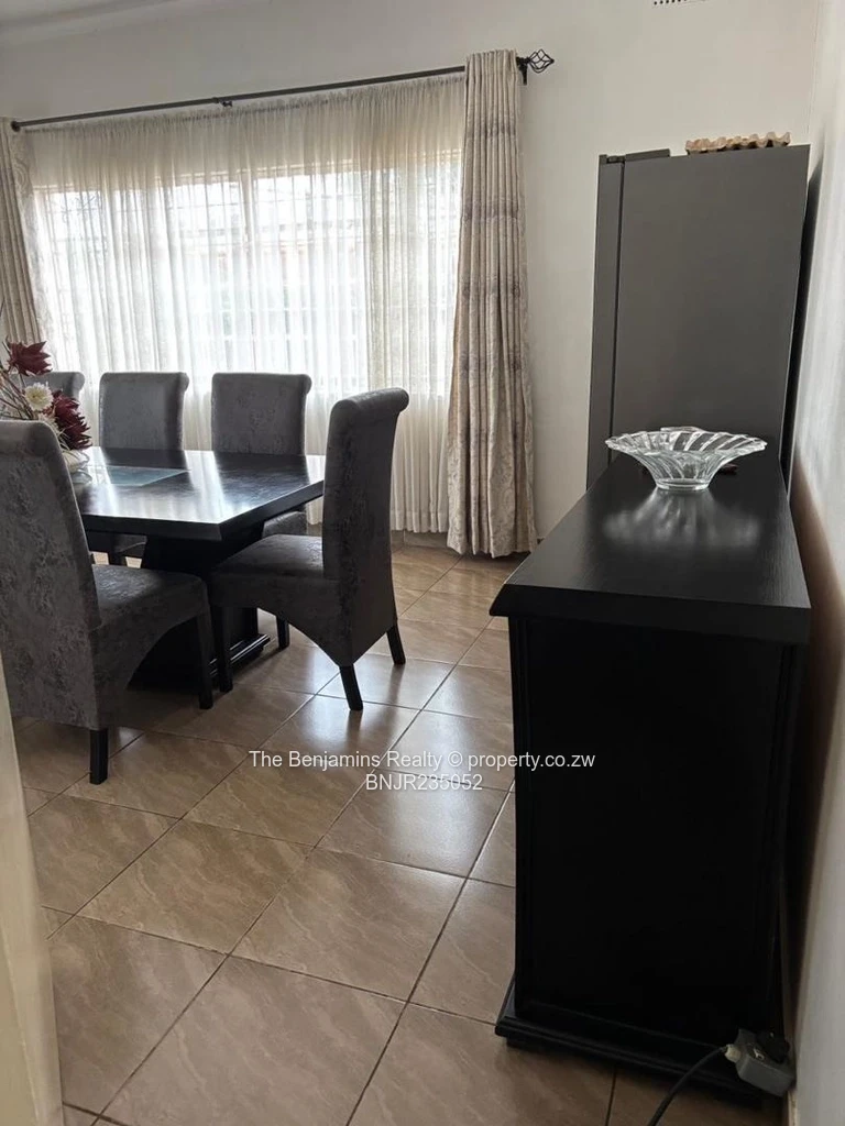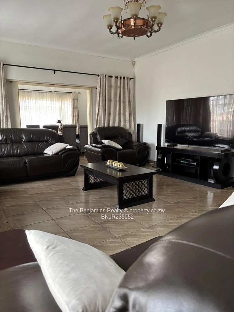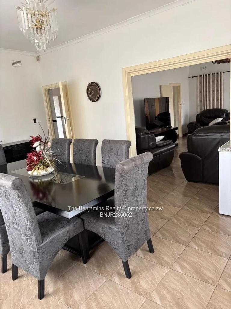4-bedroom, 3-bathroom house located in the serene neighborhood of Avondale West, Harare. The property boasts an appealing blend of traditional and contemporary design elements, showcased by its inviting brick and stucco façade. Large windows flood the spacious living areas with natural light, enhancing the cozy atmosphere.